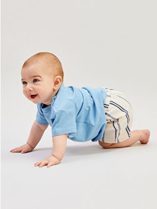 Mavi Baskılı Erkek Bebek Tişört Ve Şort 2’li