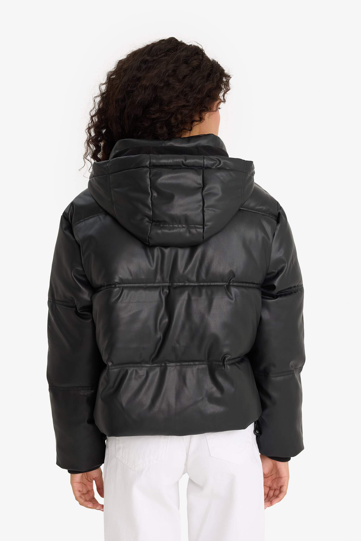 Regular Fit Kapüşonlu Polar Astarlı Suni Deri Mont