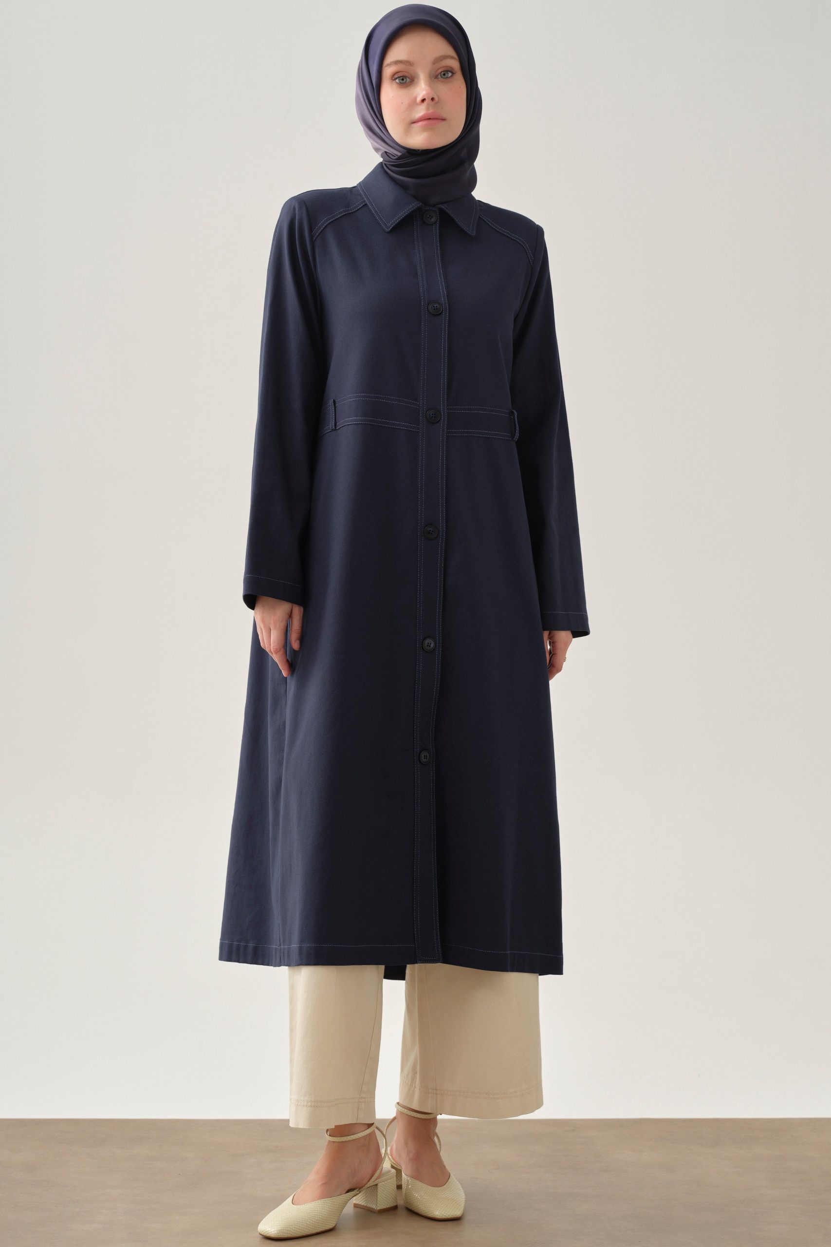 Doğal ve ferah bir görünüm sunan taş rengi uzun tunik, yaz sezonunun hafif ve şık parçalarından biri. %88 Tencel ve %12 Pes karışımından üretilen kumaşı, yumuşak dokusu ve nefes alabilir yapısıyla gün boyu konfor sağlar. Minimal tasarımı, gizli patlı düğme detayı ve eteğinde yer alan zarif kavis kesimi ile modern bir duruş sergiler.