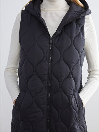 Siyah Kapüşonlu Kapitone Kadın Şişme Yelek