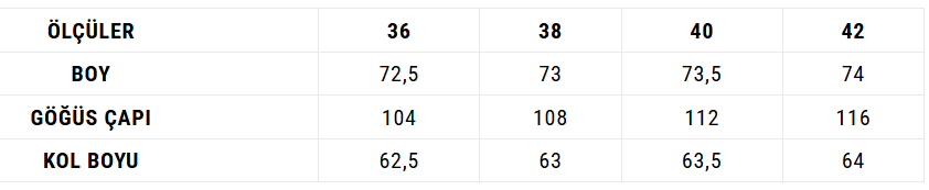 YUKARDA BELİRTİLEN ÖLÇÜLER STANDART BEDENE AİTTİR.