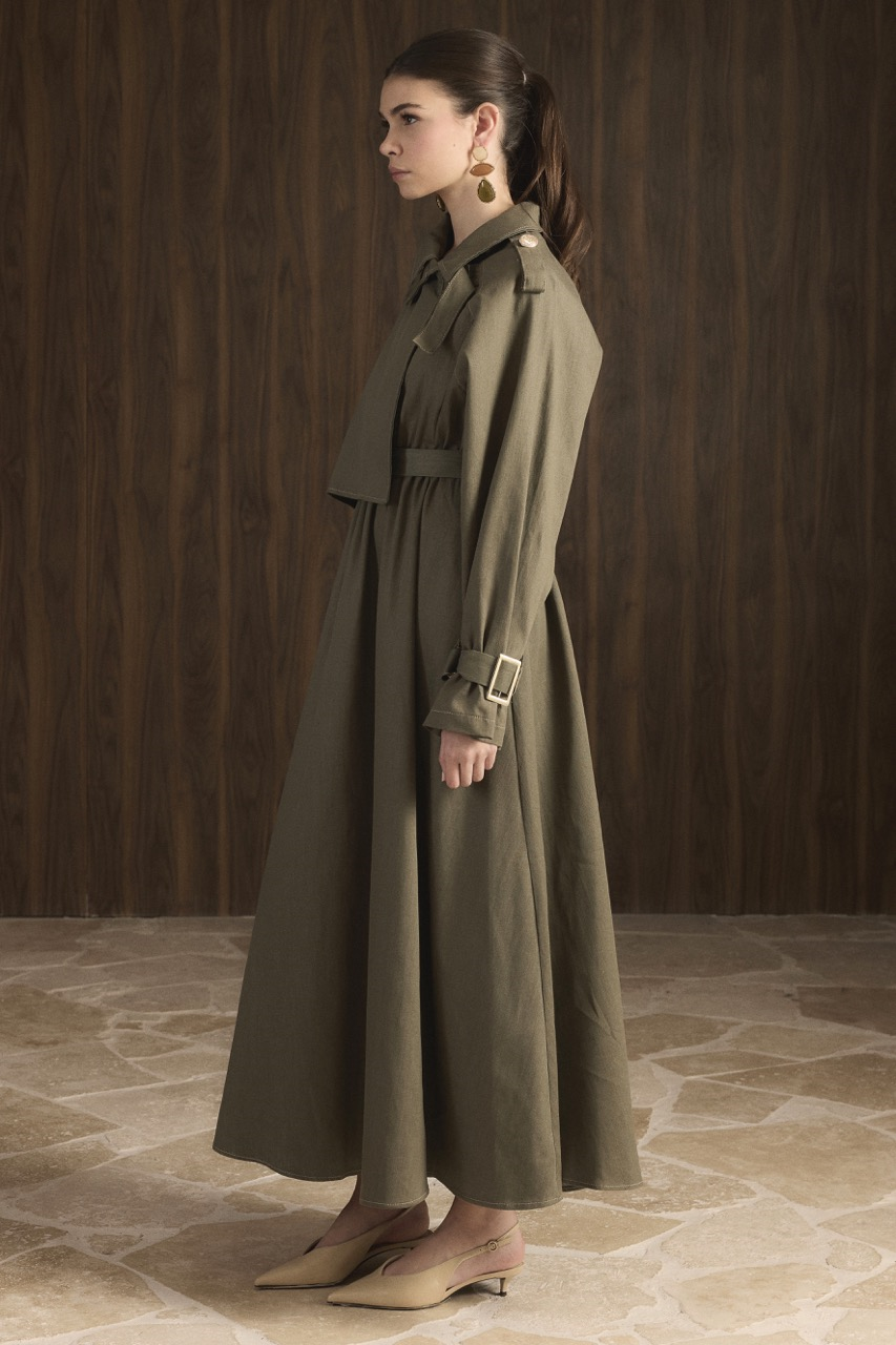 Şık ve modern bir tasarıma sahip Vera Trenç Elbise, her mevsim gardırobunuzun vazgeçilmez parçası olacak. Kaliteli kumaşı ve zarif kesimiyle hem günlük kullanımda hem de özel günlerde şıklığınızı öne çıkarır. Haki rengi ile doğal ve minimalist bir tarz sunar.