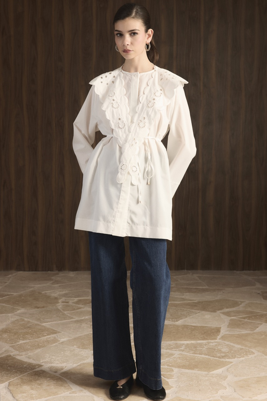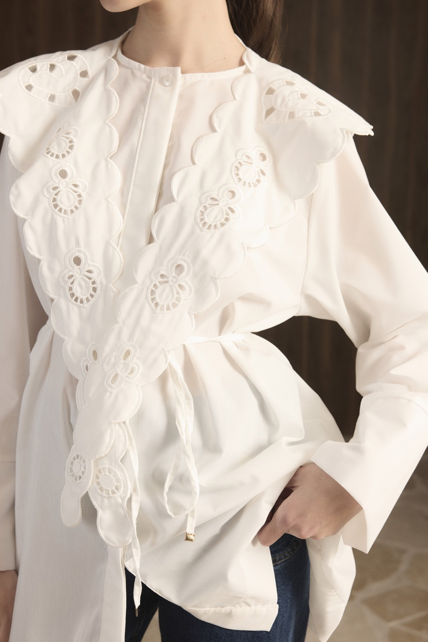 Yaka Nakışlı Dacron Gömlek – Ekru
