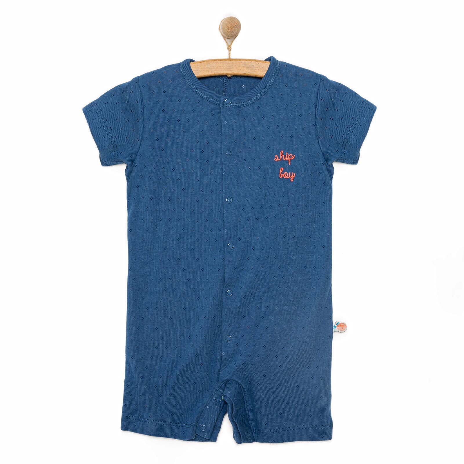 Yenidoğan Erkek Bebek Kısa Tulum İnterlok Ship Boy Lacivert