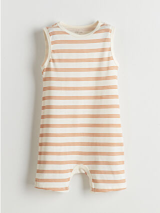 Ekru Bisiklet Yaka Erkek Bebek Penye Tulum