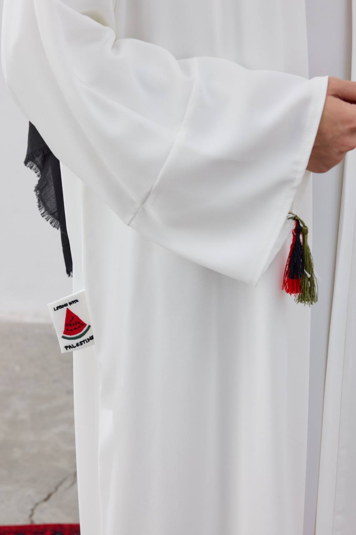 • أكمام واسعة بتفاصيل شرابات ملونة