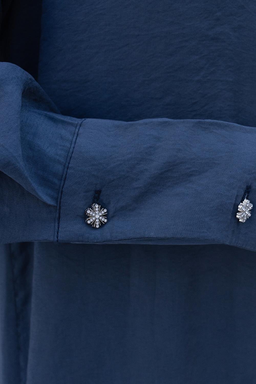 إنديغو01 – تونيك قميص مودال بأزرار حجرية