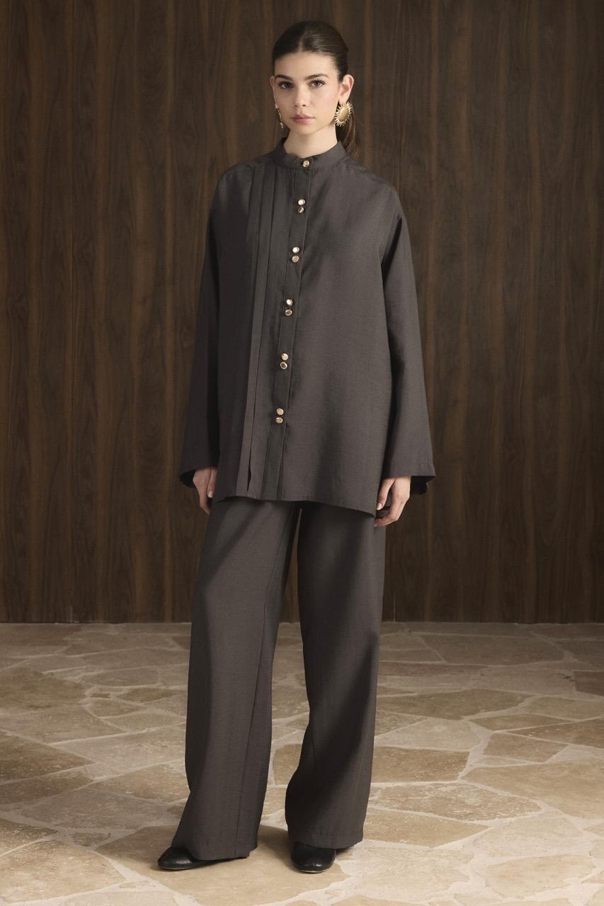 بدلة بنطلون بتفاصيل نيرفور – رمادي دخاني