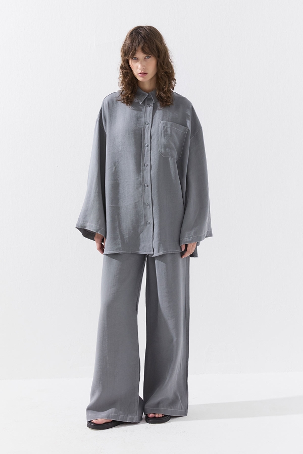 بدلة بنطلون رمادية مريحة بتفاصيل الخياطة
