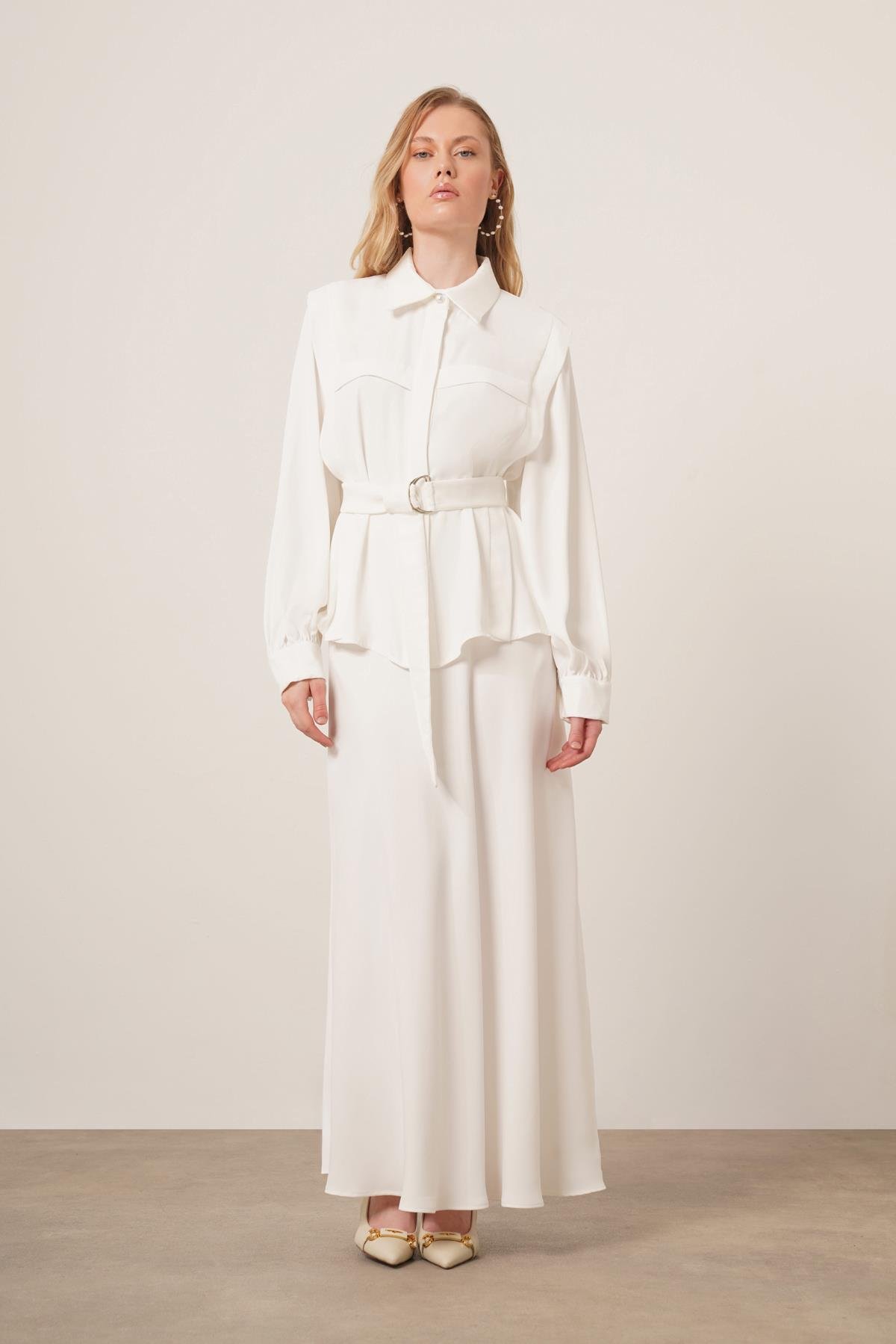 بدلة تنورة بيار للنساء من FTZ بلون العاج 31148