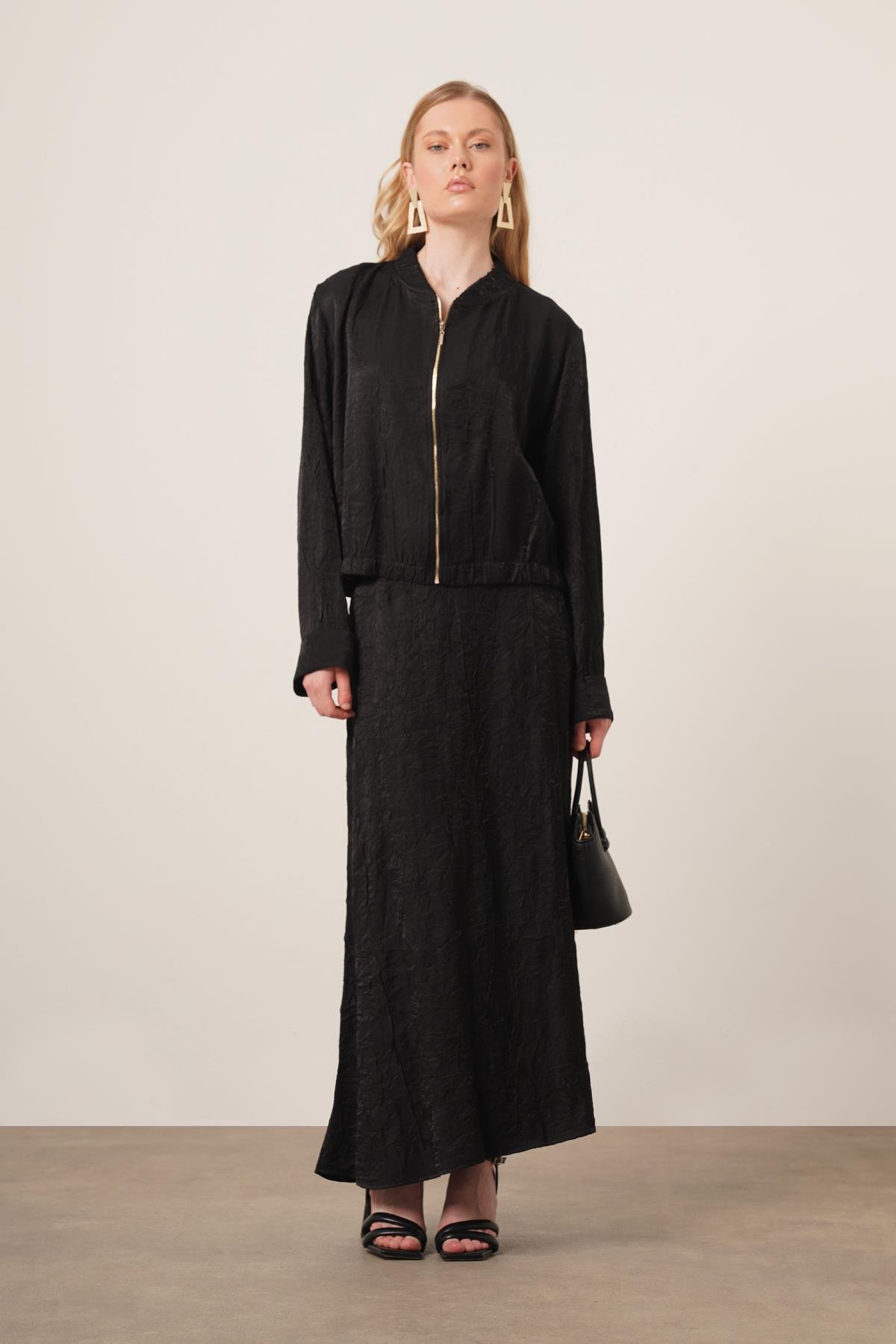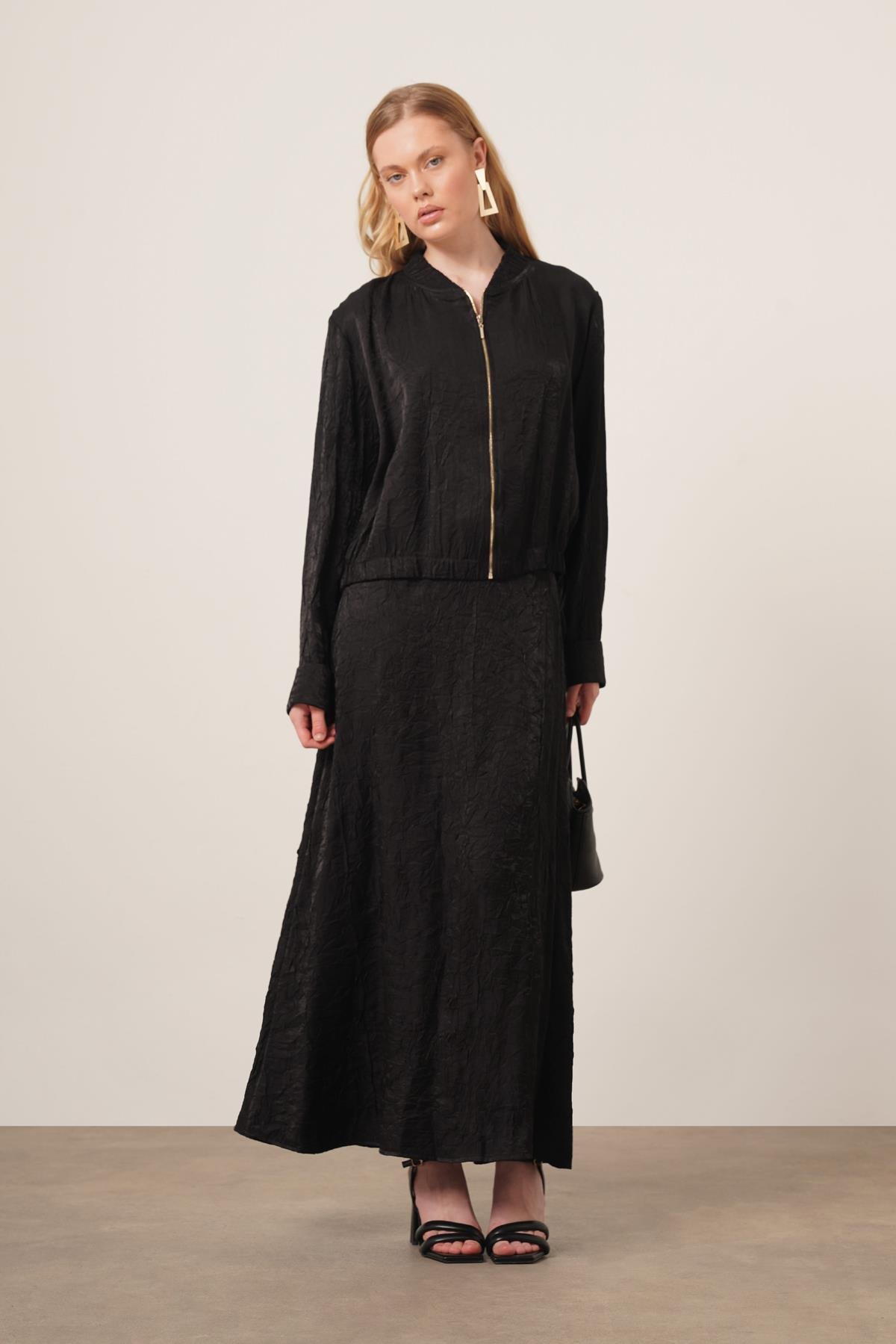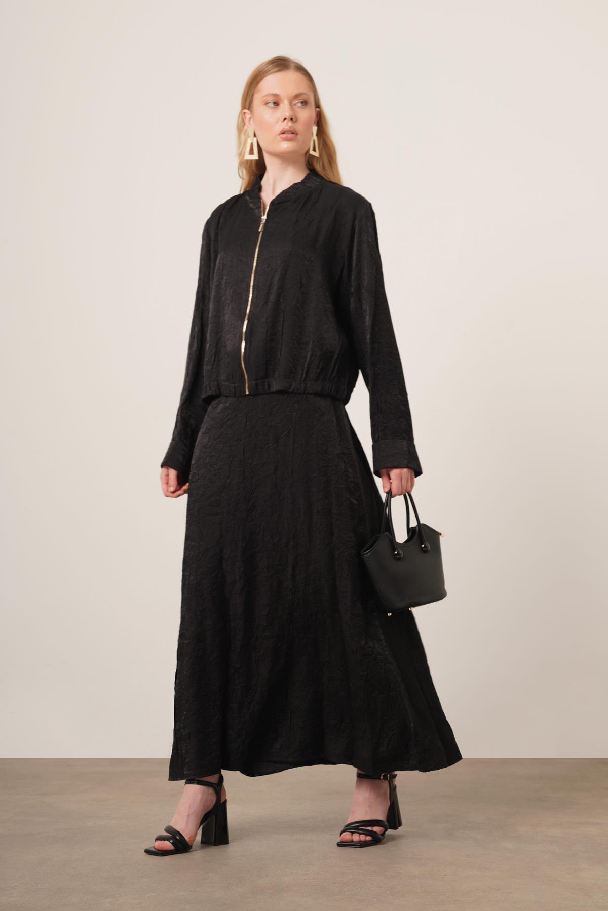 بدلة تنورة مجعدة للنساء من FTZ باللون الأسود 31171