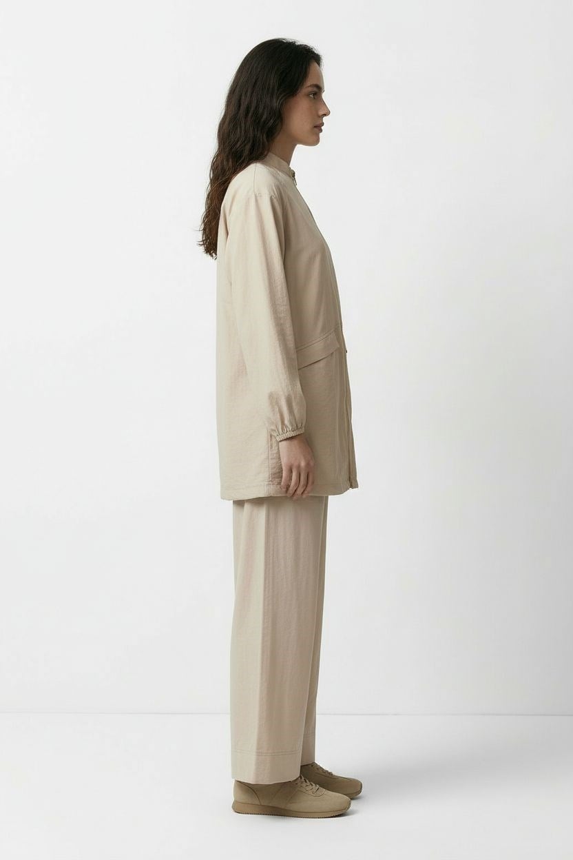طقم السترة المزدوج هذا بتفاصيله الأنيقة هو خيار متعدد الاستخدامات يمكن استخدامه في العديد من المناسبات، من الدعوات الخاصة إلى الأناقة اليومية. إنه الخيار المثالي للسيدات اللواتي يرغبن في الظهور بأناقة مع الشعور بالراحة. باهتمامه الدقيق بالتفاصيل ووقفته الراقية، يصبح الخيار الأمثل لمن يرغبن في الظهور بأناقة في كل مكان. هذا الطقم مع السترة، الذي يمكن الانتقال به بسهولة من النهار إلى الليل، يصبح قطعة المنقذ في خزانة ملابسك.