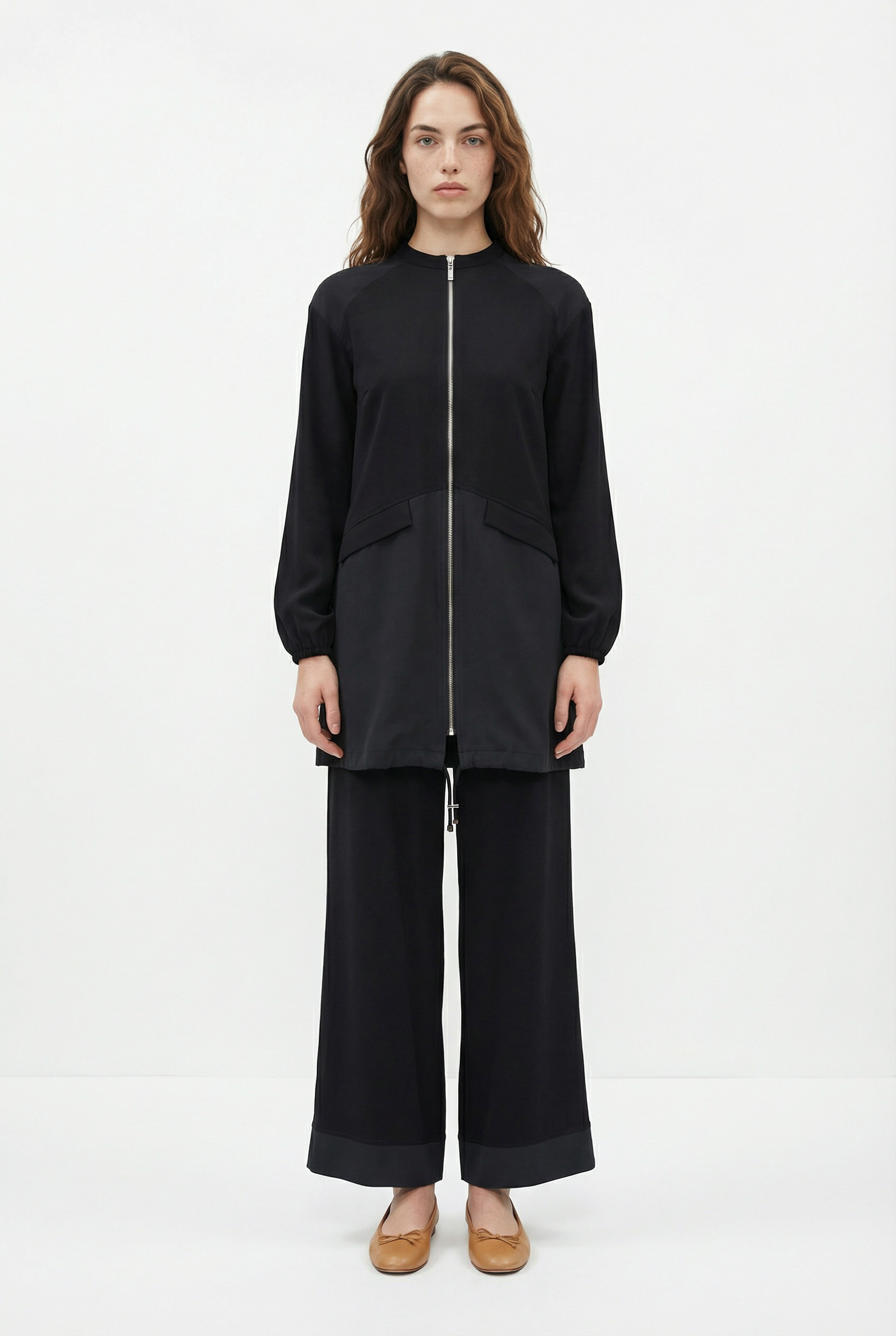 يقدم هذا الطقم الثنائي المتناسق، المكون من فستان وقطعة خارجية، أناقة بخطوطه النظيفة بأكثر الطرق عملية. شكله المتدفق وتصميمه المريح يوفران الراحة لكل من الاستخدام اليومي والمناسبات الخاصة، بينما يشكل هيكله المتناسق أناقة عصرية.