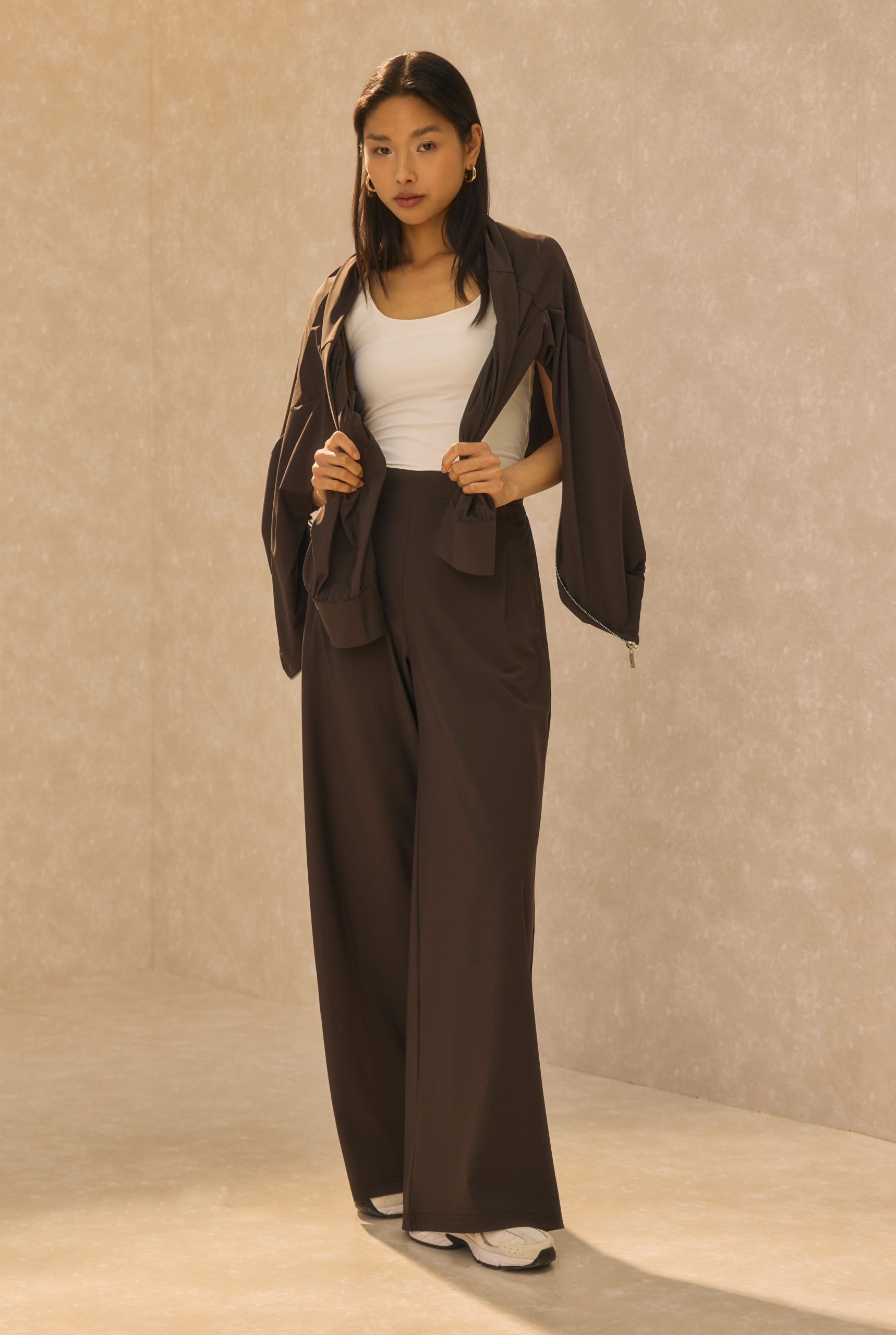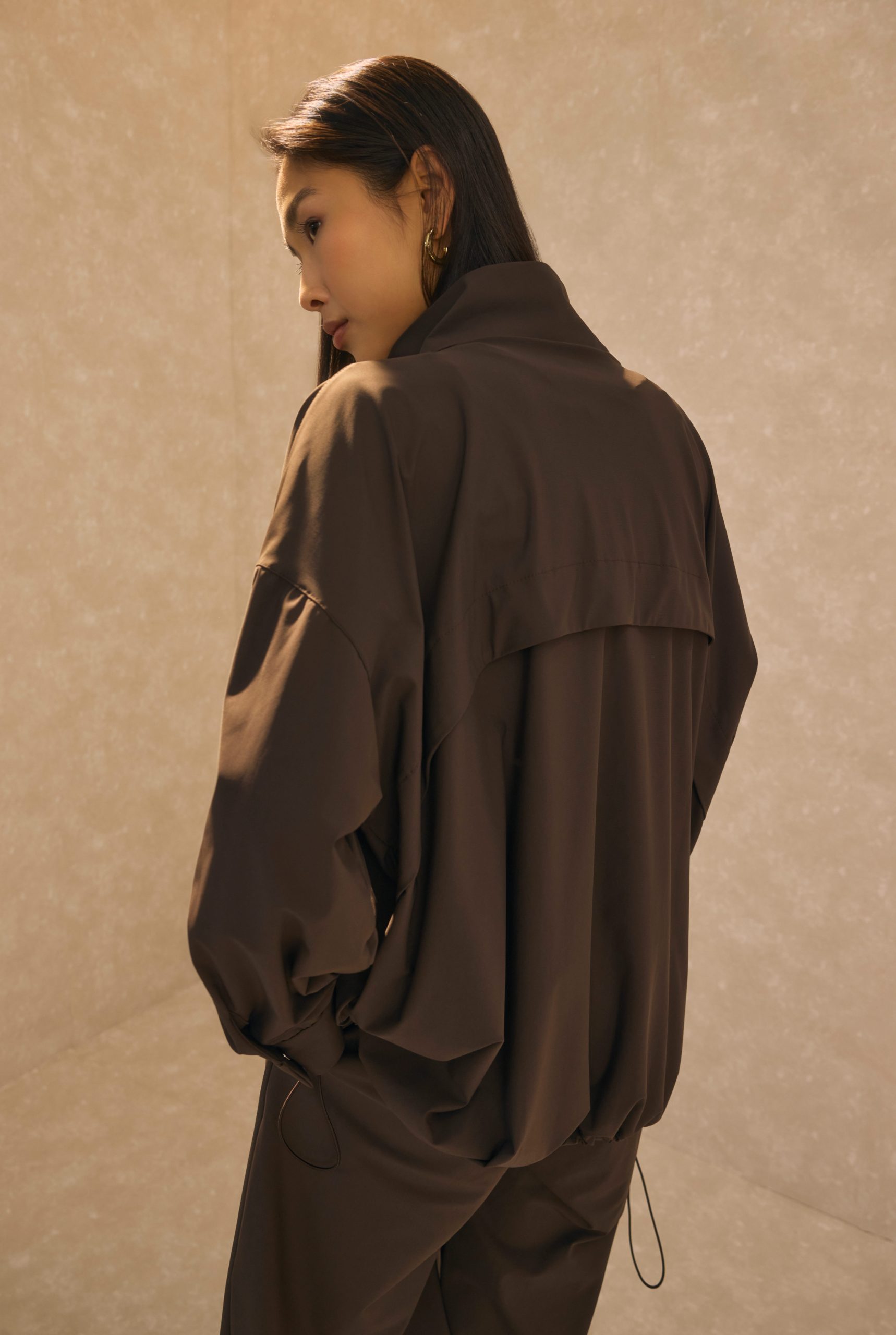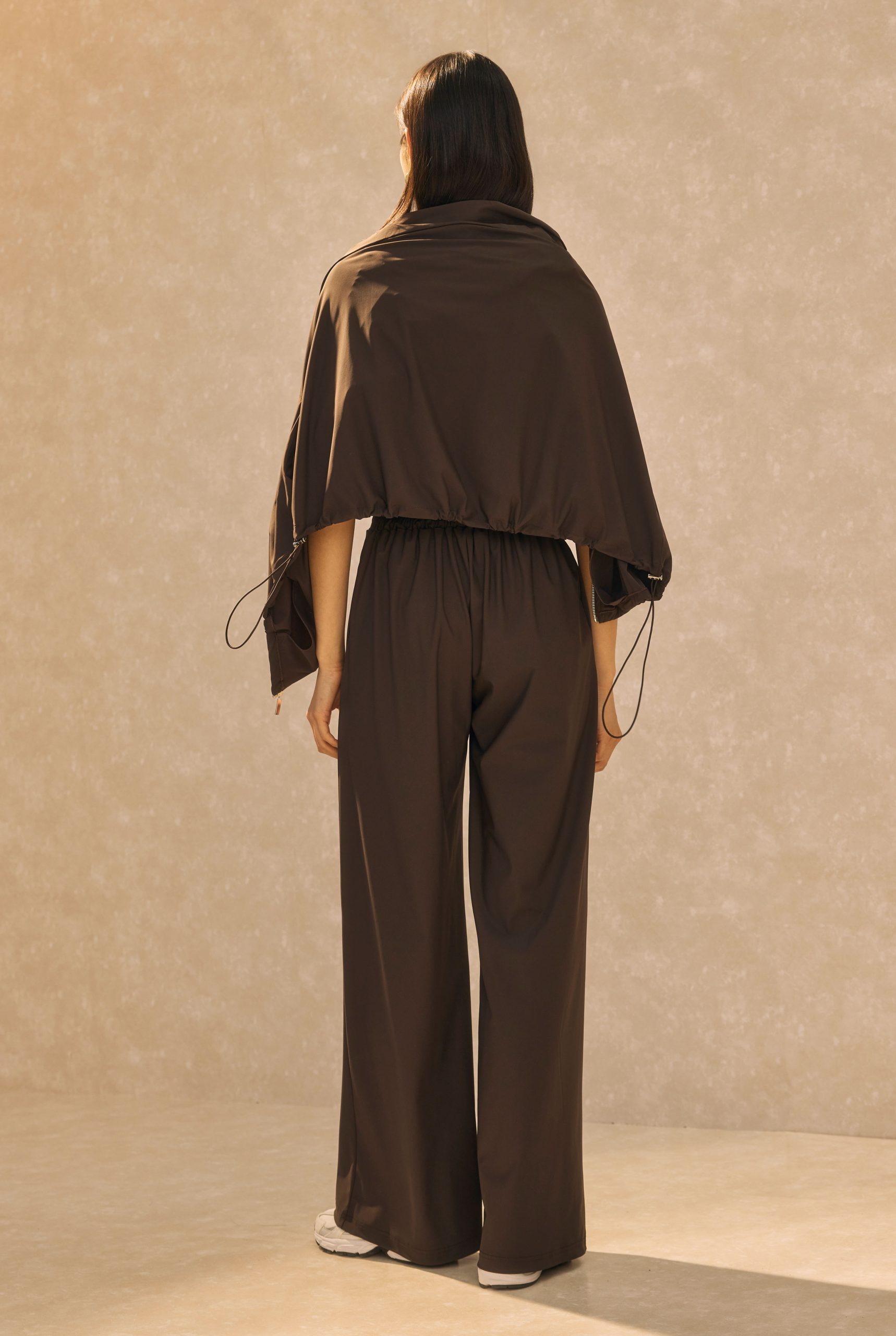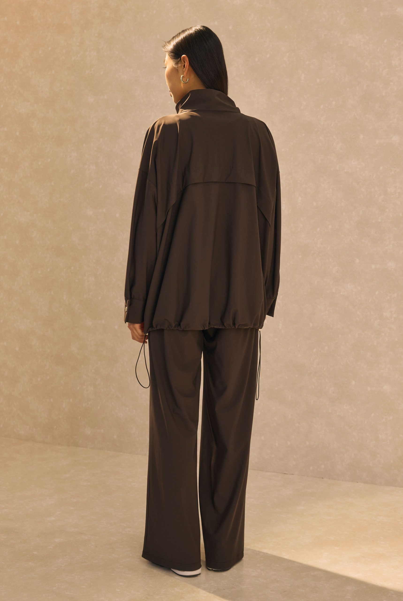 بدلة رياضية برقبة عالية بلون الرمل البني المر