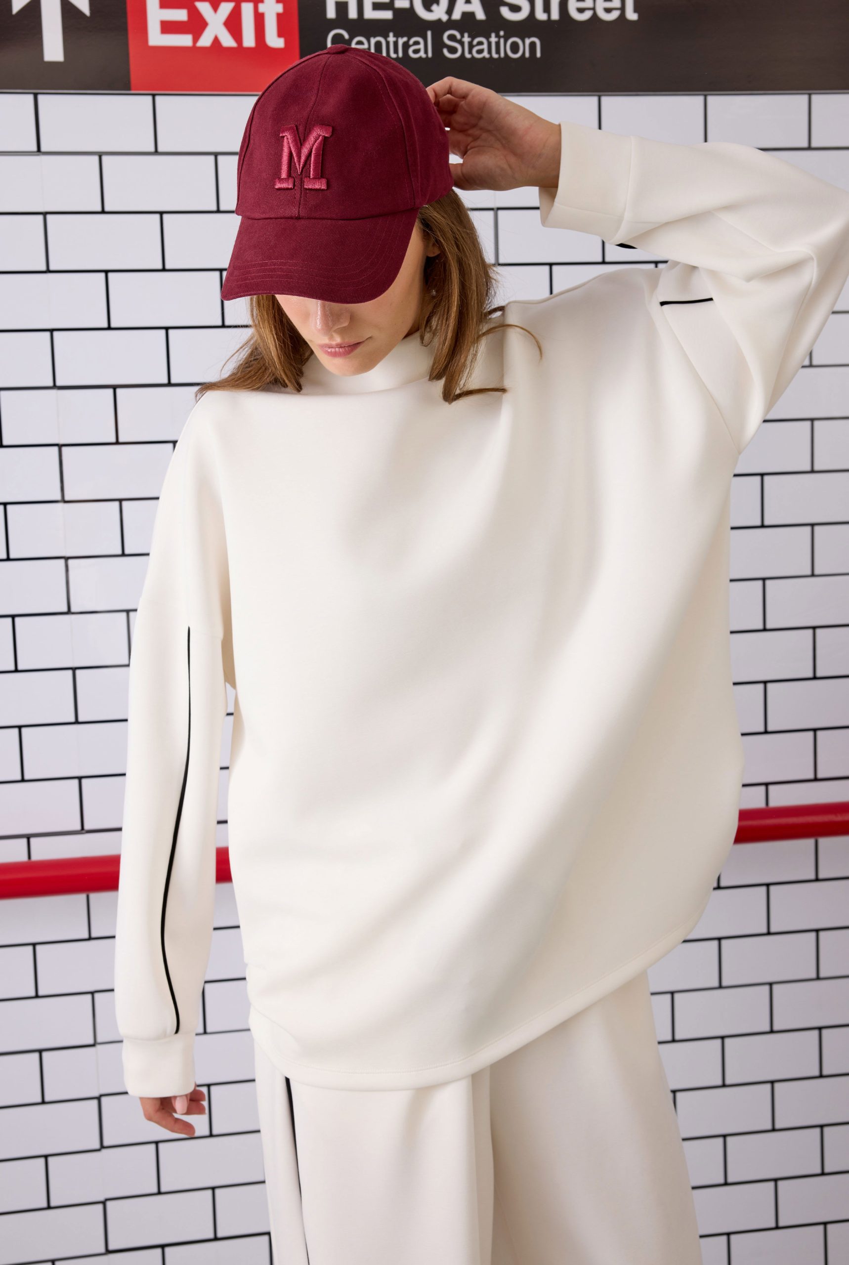 بدلة رياضية بتفصيلات متباينة مصنوعة من قماش المودال، تقدم الأناقة والراحة معاً. تُبرز التفصيلات المتباينة التصميم، مما يضفي لمسة عصرية على البدلة الرياضية الكلاسيكية. يوفر مكون المودال ملمساً ناعماً وتدفقاً مميزاً، بينما يضيف الإيلاستين المرونة. القصة فضفاضة؛ إذا كنت تفضل مظهراً أقل اتساعاً من الموديل، نوصي باختيار مقاس أصغر. تعليمات العناية: غسل لطيف على درجة حرارة 30°مئوية. لا تجفف في المجفف. مقاسات الجزء العلوي: الطول: 74 سم (قد يختلف طول المنتج بمقدار 1-5 سم بين دفعات الإنتاج.) جدول المقاسات: الصدر الورك الكم العضلة مقاس S-M: 126 سم 120 سم 48 سم 40 سم مقاس M-L: 130 سم 124 سم 49 سم 42 سم مقاسات الجزء السفلي: الطول: 109 سم (قد يختلف طول المنتج بمقدار 1-3 سم بين دفعات الإنتاج.) جدول المقاسات: الخصر الورك مقاس S-M: 60 سم 115 سم مقاس M-L: 64 سم 119 سم مقاسات الموديل: الطول: 176 سم الصدر: 84 سم الخصر: 62 سم الورك: 88 سم المقاس الذي ترتديه الموديل: S-M