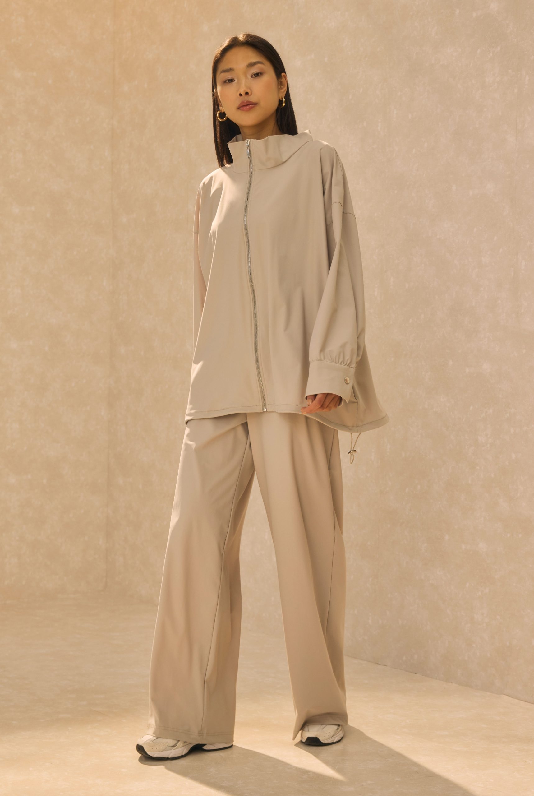 مصنوعة من مزيج 79% بولي أميد و21% إيلاستين، تضمن هذه البدلة الرياضية ذات الرقبة العالية استخدامًا طويل الأمد بفضل طبيعة القماش التنفسية والمتينة. بينما يوفر محتوى الإيلاستين حرية الحركة، فإن تصميمها الفضفاض والرقبة العالية يقدمان الأناقة الرياضية واليومية معًا. إنها خيار مثالي للتركيبات العصرية والمريحة.