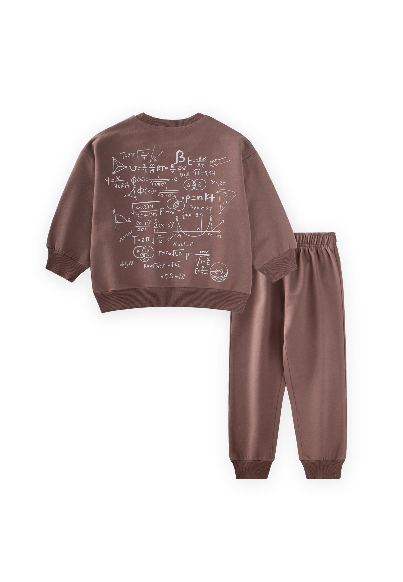 بدلة رياضية مطرزة للأطفال عمر 2-7 سنوات بلون القهوة بالحليب