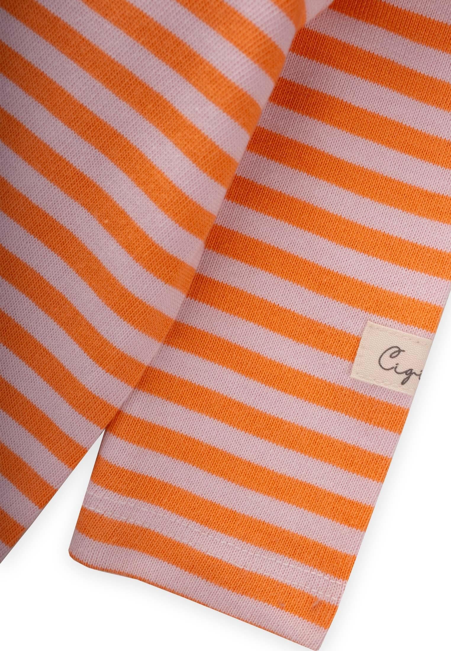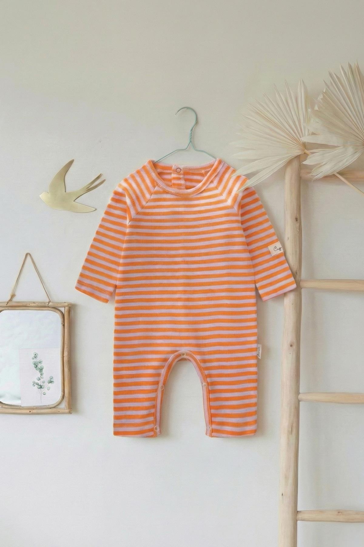 بدلة قطني مخططة 0-3 سنوات بلون الخوخ البودري