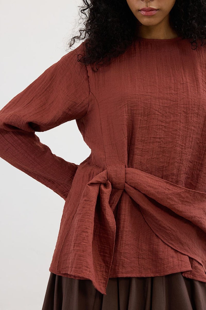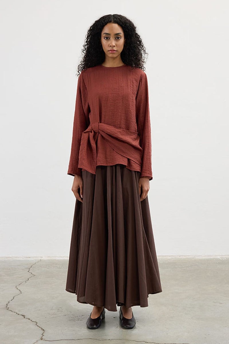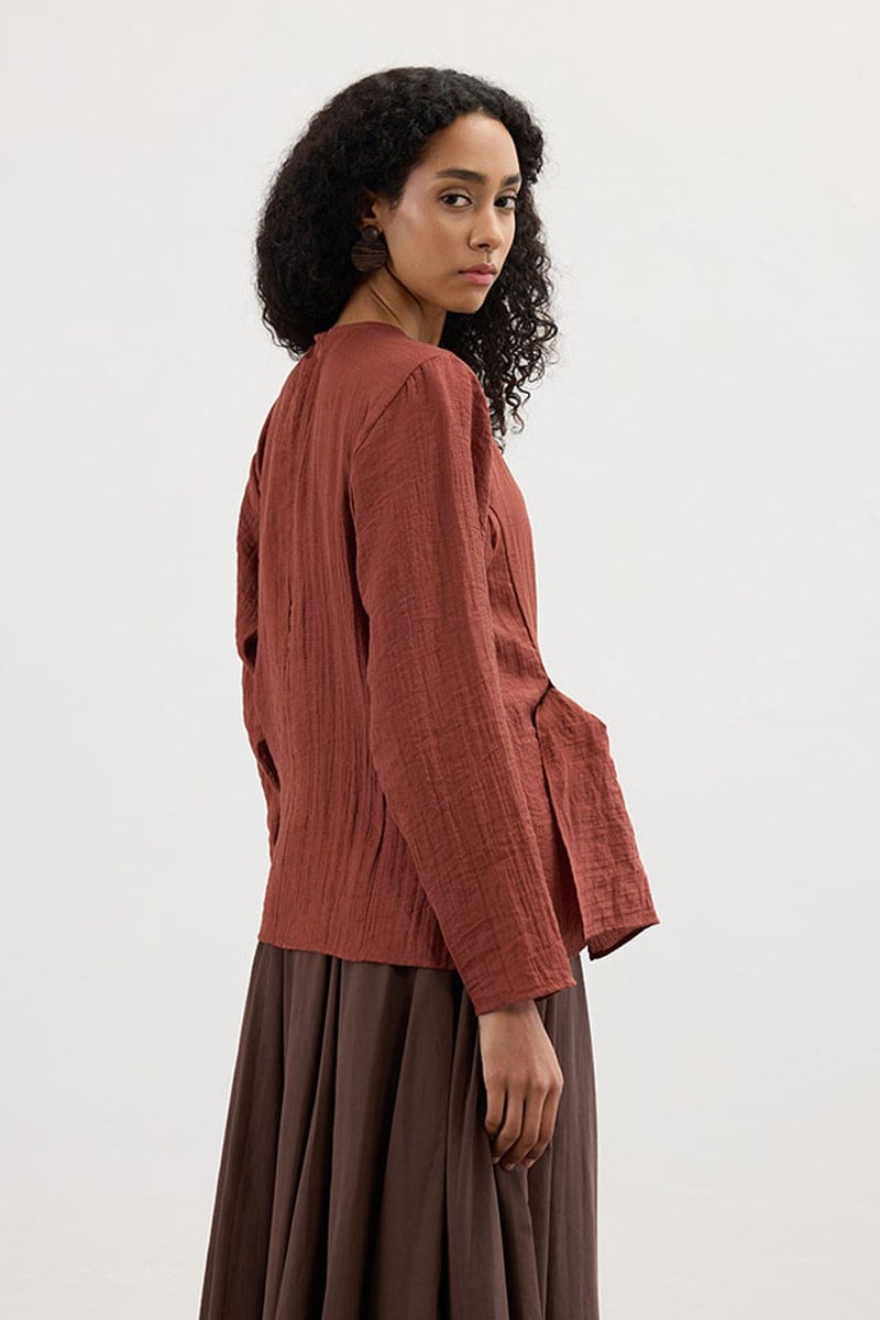 بلوزة بتفاصيل جسرية بلون الطوب