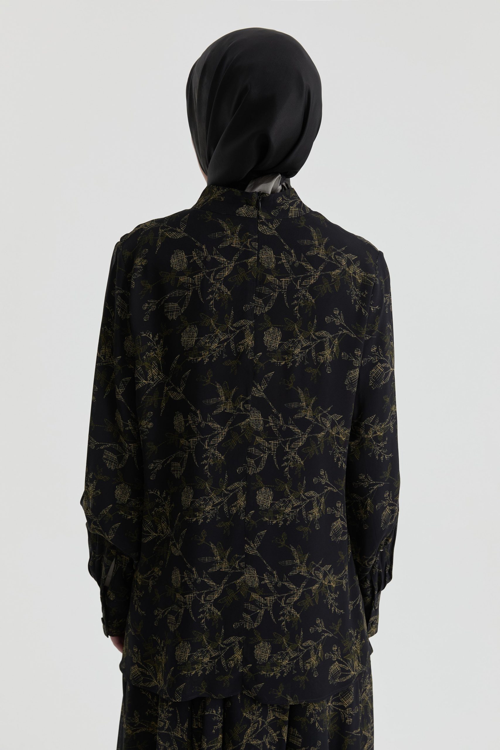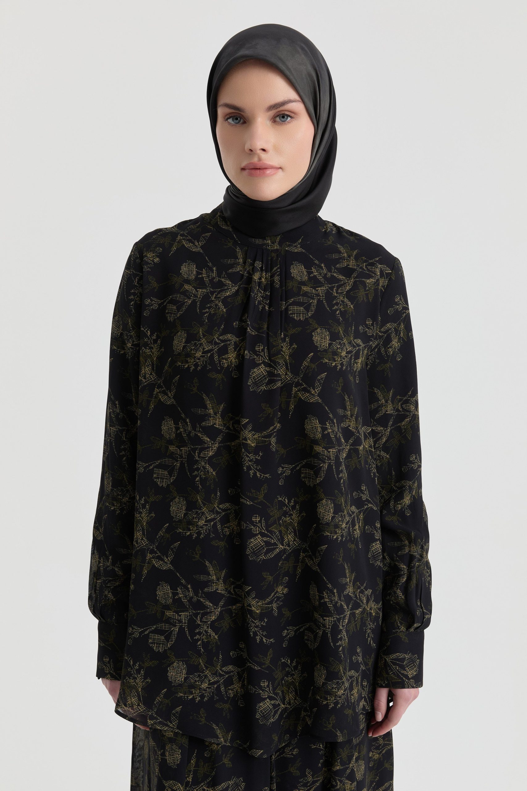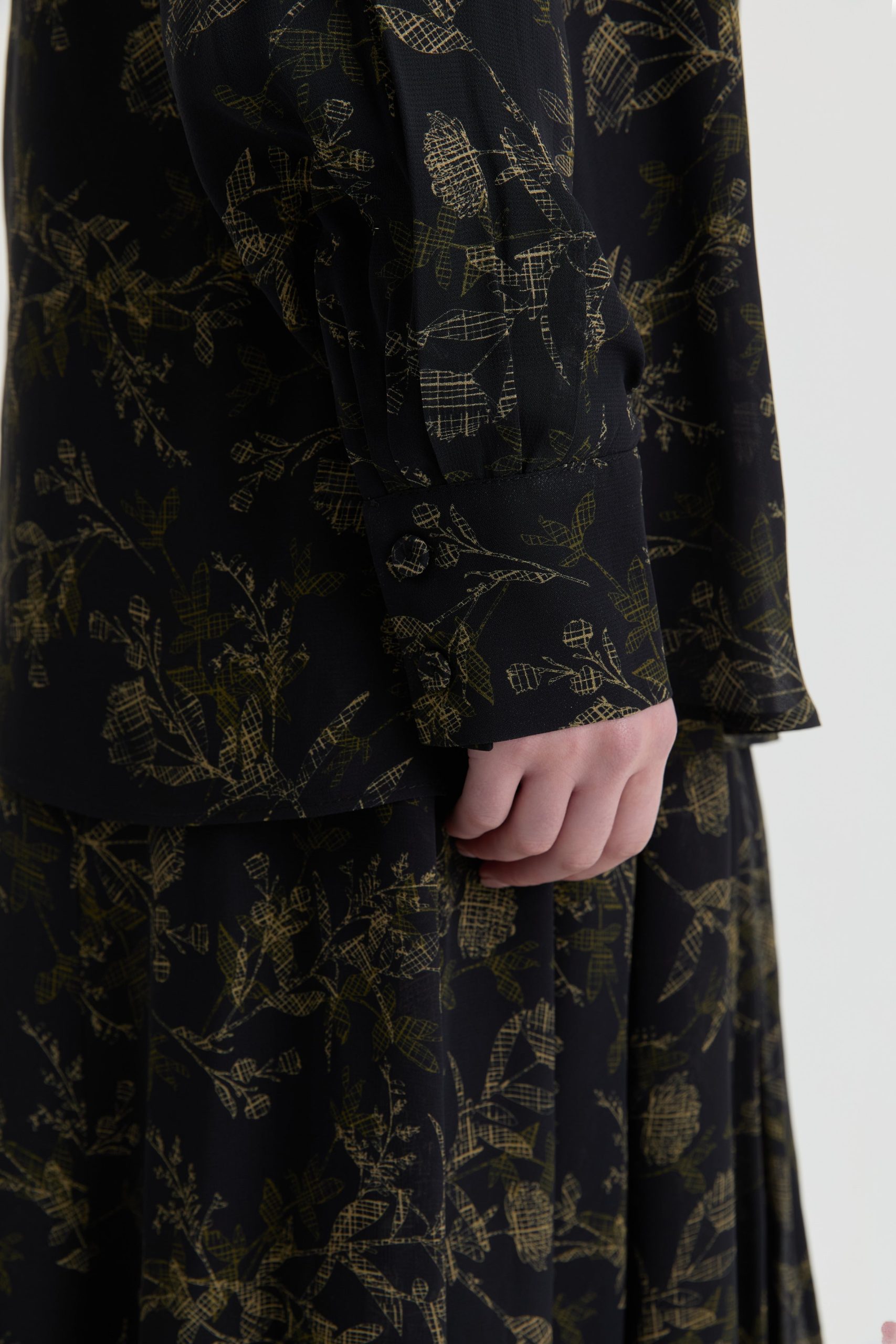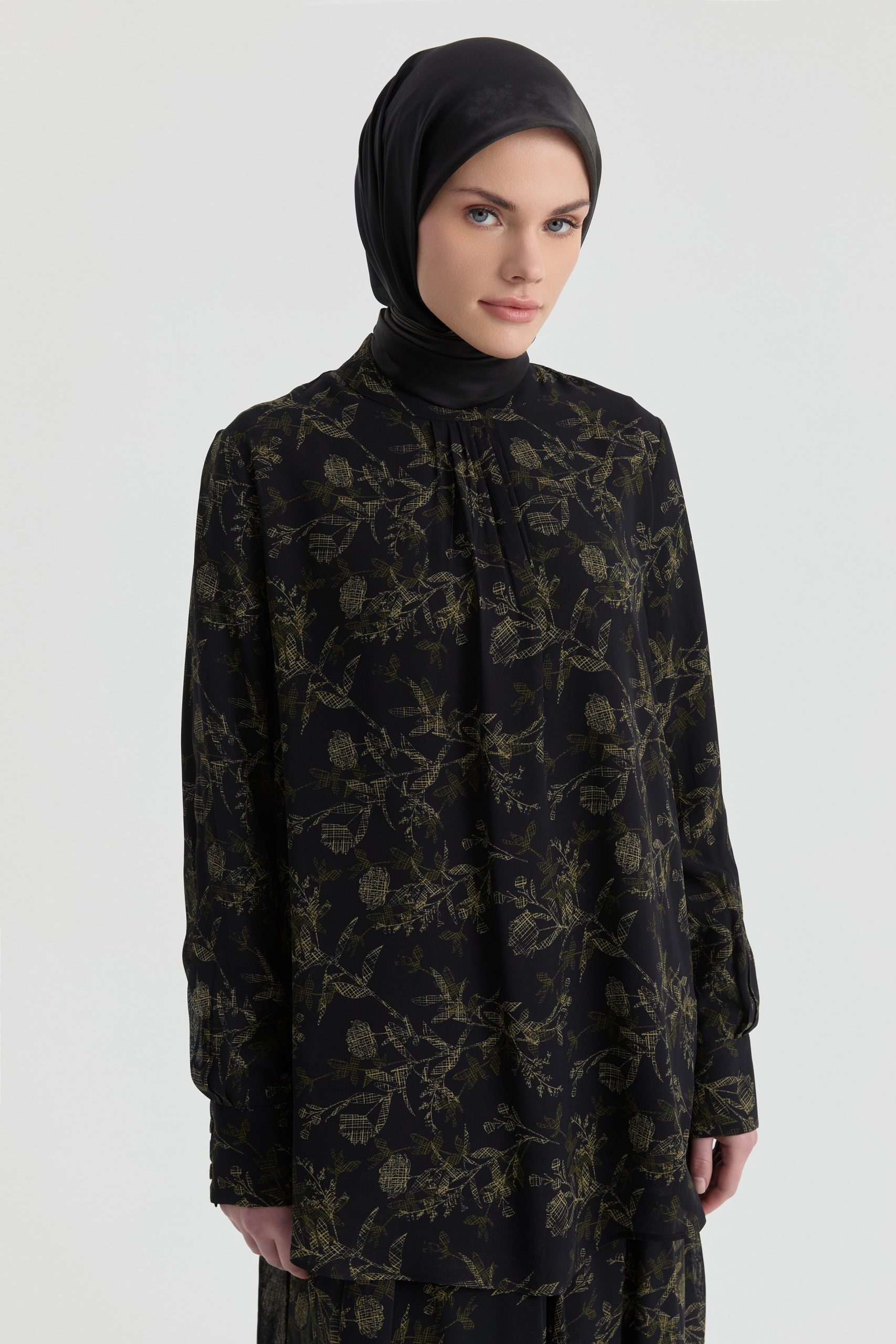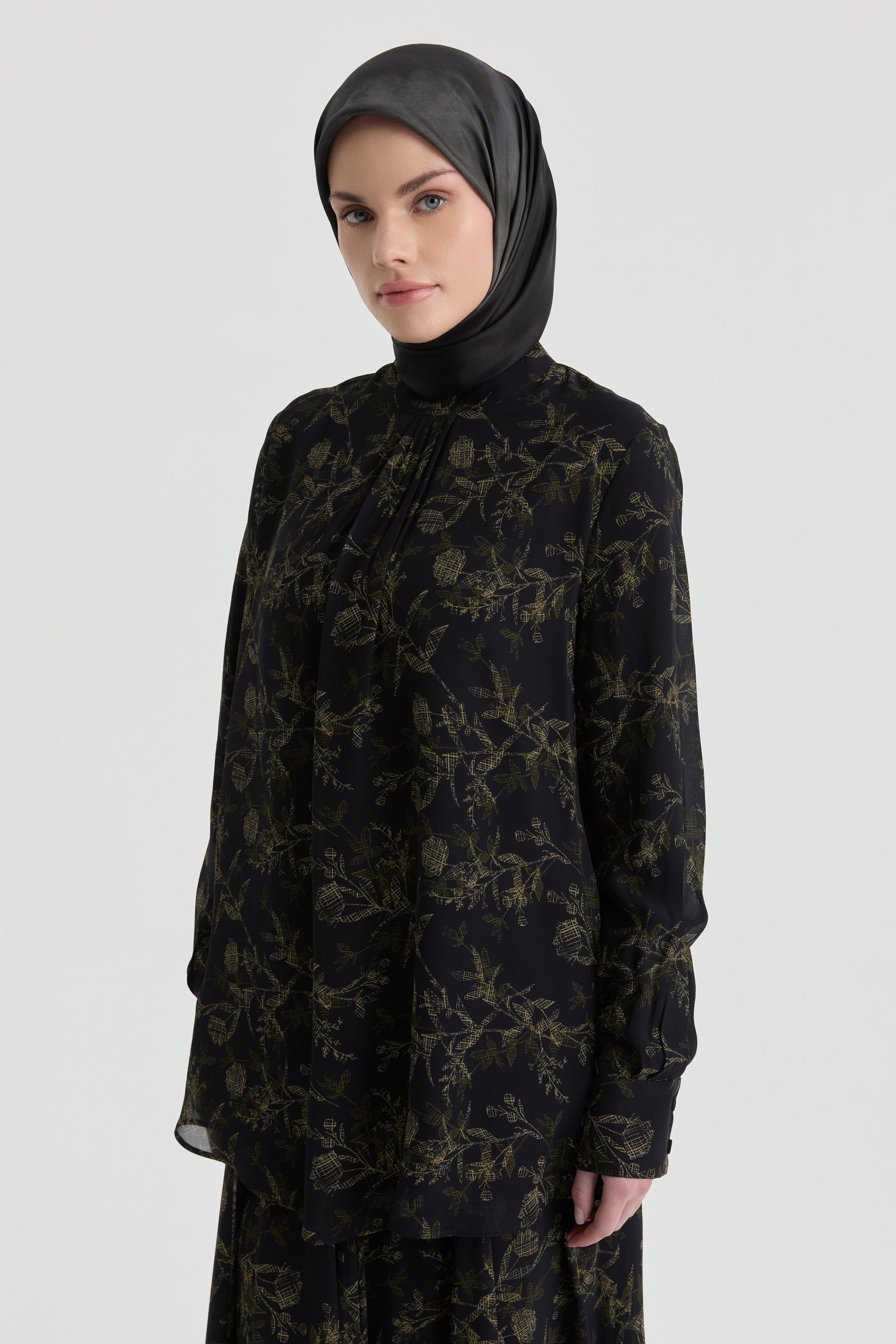 تخلق هذه البلوزة حركة رقيقة على السطح بتفاصيلها المطوية، محولة شكلها البسيط إلى جماليات نحتية. يخلق قوامها المتدفق أناقة طبيعية على الجسم بينما يعكس حجمها المحكم الفخامة العصرية بقوة هادئة.