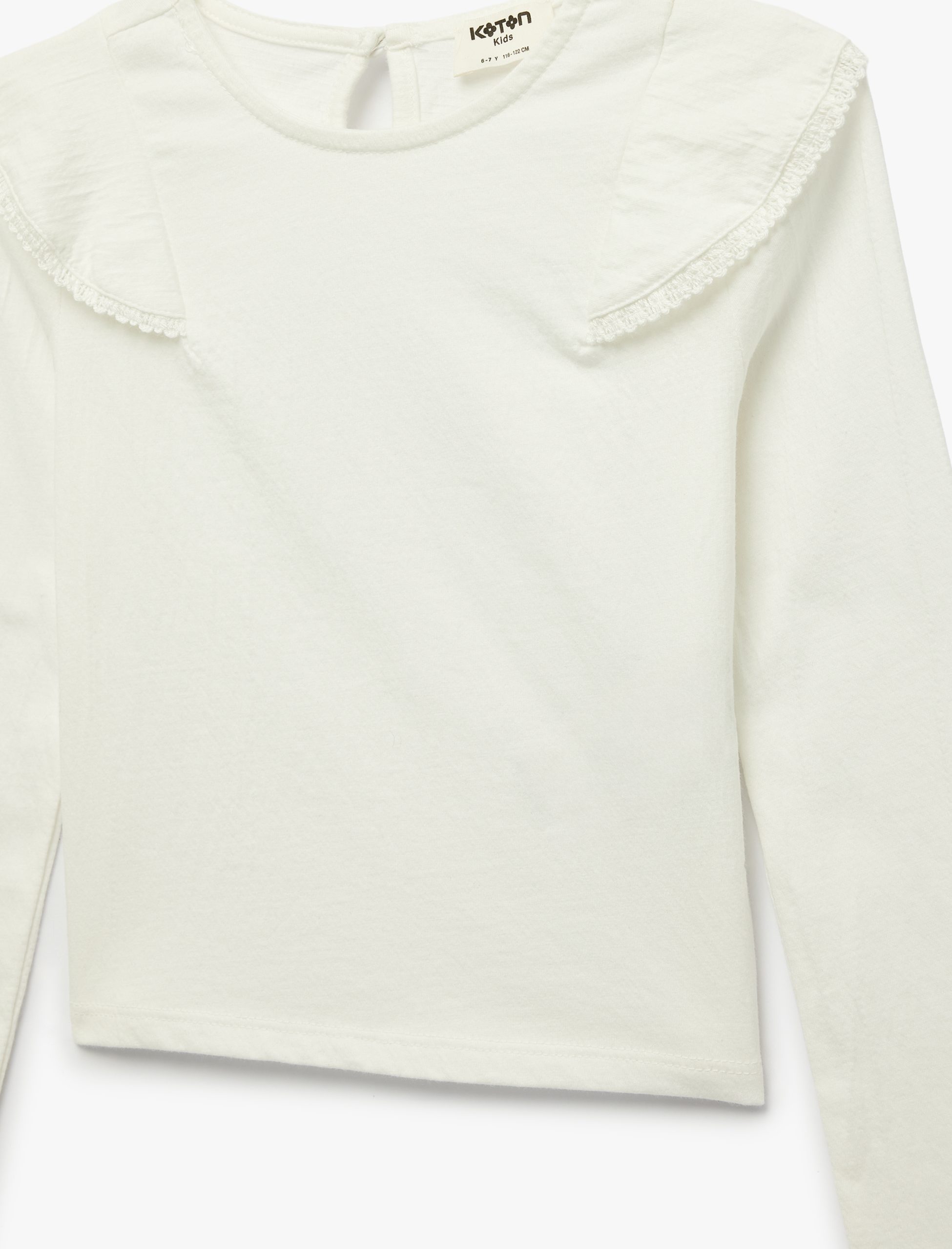 بلوزة قطنية بأكمام طويلة ورقبة مستديرة ومكشكشة للفتيات