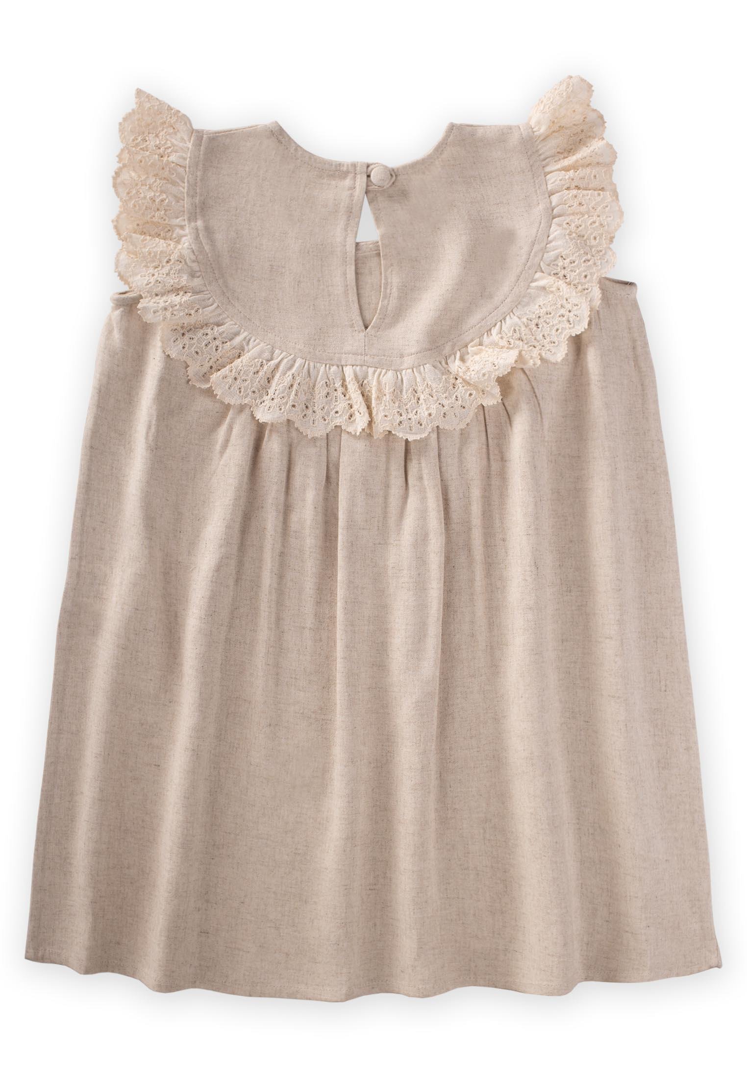 بلوزة كتان دانتيل للفتيات من عمر 2-7 سنوات باللون الطبيعي