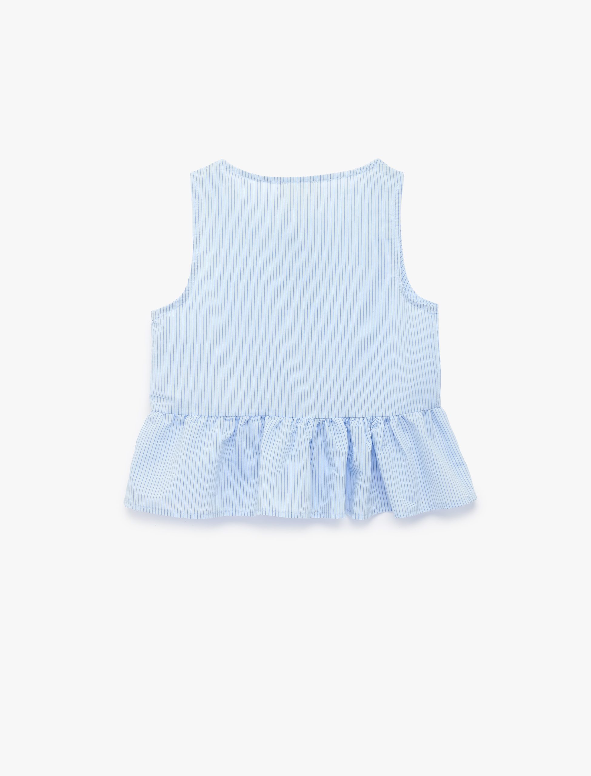 بلوزة مخططة بدون أكمام بتفاصيل كشكش ورباط مع طوق القارب