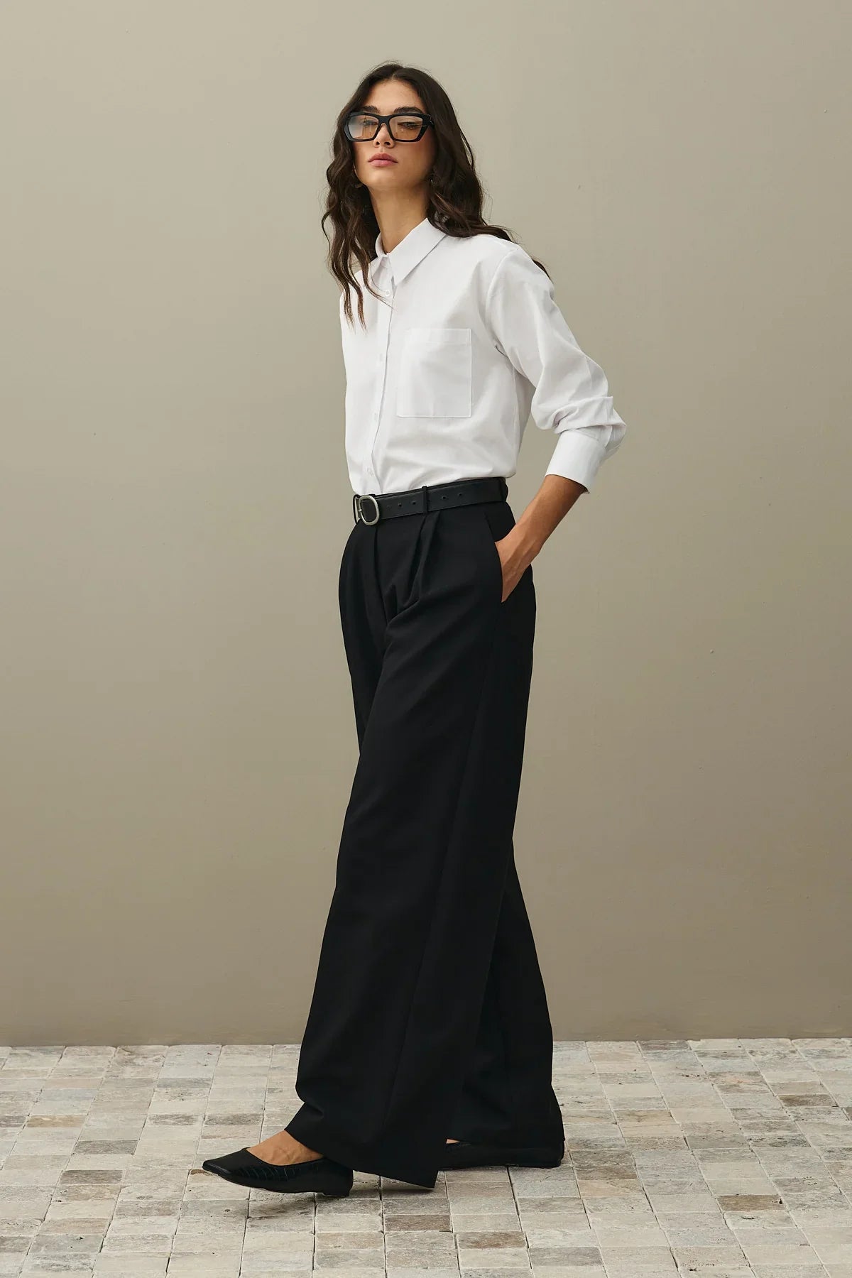 العلامات: women's fashion, بنطلون أسود, بنطلون بالازو, بنطلون بخصر عالٍ