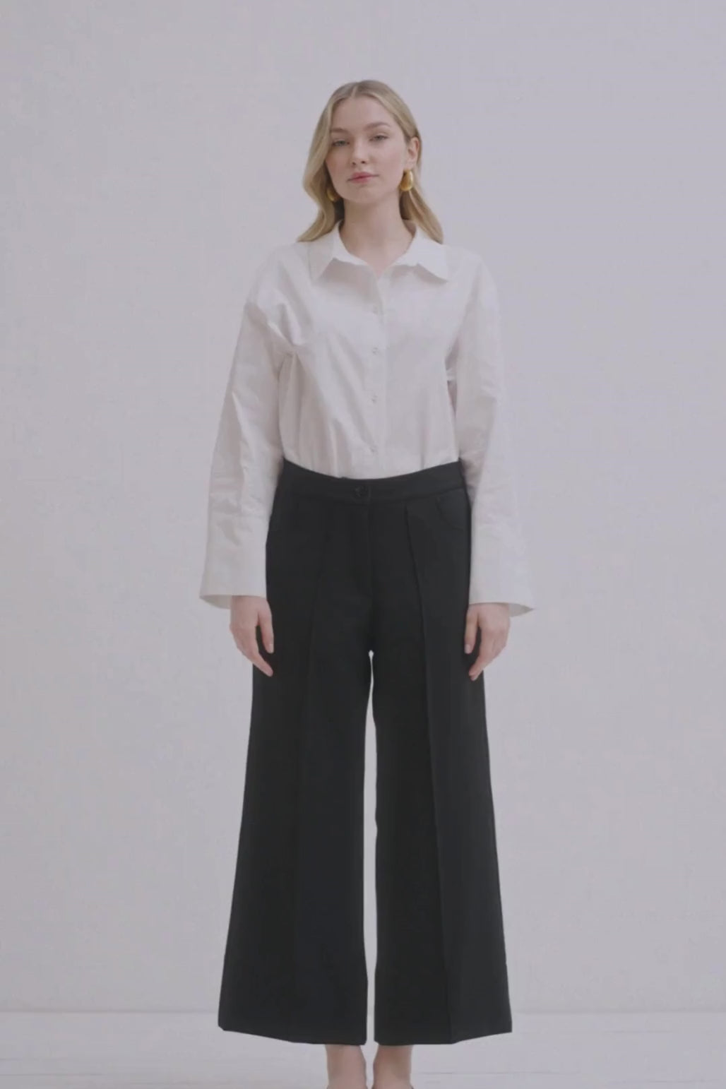 يقدم بنطال نيكول المخيط باللون الأسود، المصنوع من قماش الكريب المزدوج، كل من الأناقة والراحة معًا بفضل نسيجه الرقيق. يوفر تصميم الخصر العالي، وتفاصيل الأربطة المطاطية في الخلف، والإغلاق بسحاب، ملاءمة مثالية، بينما تضيف الجيوب وتفاصيل الخياطة لمسة عصرية. يسمح القص الواسع للساقين بحرية الحركة. يمكنك إكمال أناقتك اليومية ببلوزة أنيقة أو تنسيقه مع أحذية بكعب لمظهر أكثر تطوراً. خيار مثالي لإضافة أناقة راقية لكل لحظاتك! المواصفات: قماش كريب مزدوج، خصر عالي، إغلاق بسحاب، مزود بجيوب، خياطة أمامية مزدوجة للساقين. العناية والمحتوى: 100% بوليستر. يمكن غسله في الغسالة بحرارة منخفضة. يجفف معلقاً. يمكن كيه على درجة حرارة منخفضة من الجهة الخلفية. قد تختلف القياسات اليدوية بمقدار 2-3 سم. قياسات العارضة: الطول 174 سم، الصدر 81 سم، الورك 93 سم. العارضة ترتدي مقاس 36.