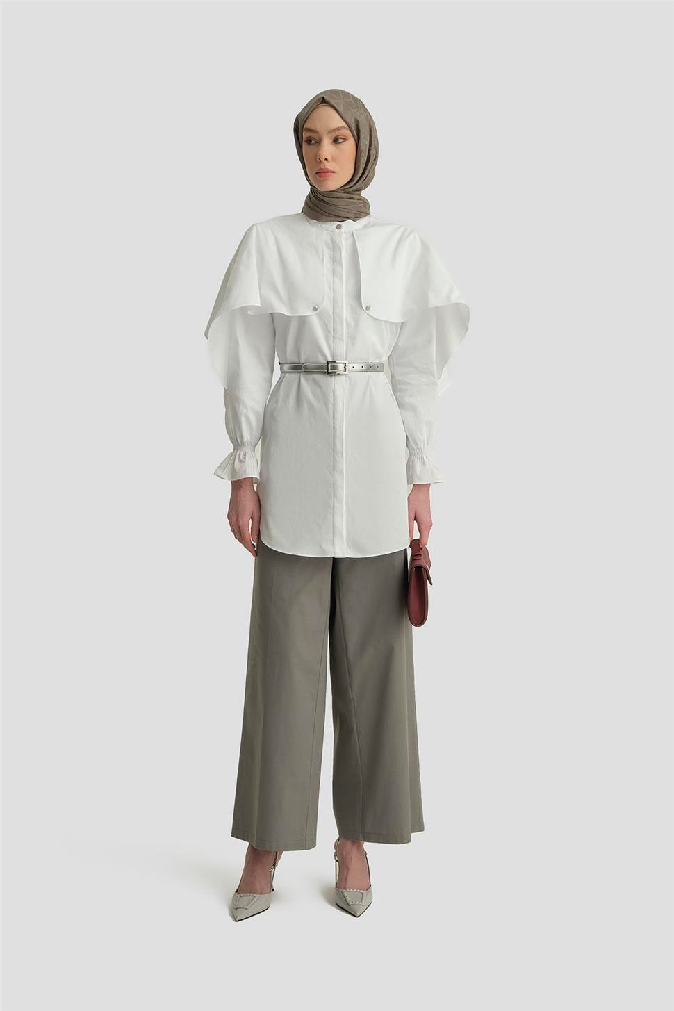 بنطلون واسع بطيات – لون المنك