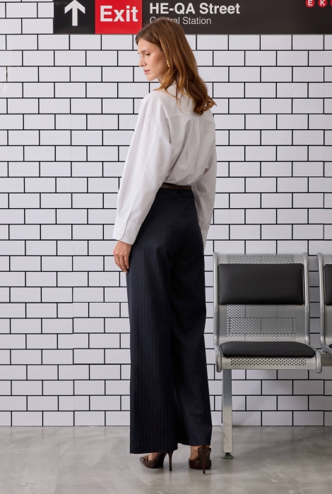 بنطلون أزرق بحري بتفاصيل شقوق