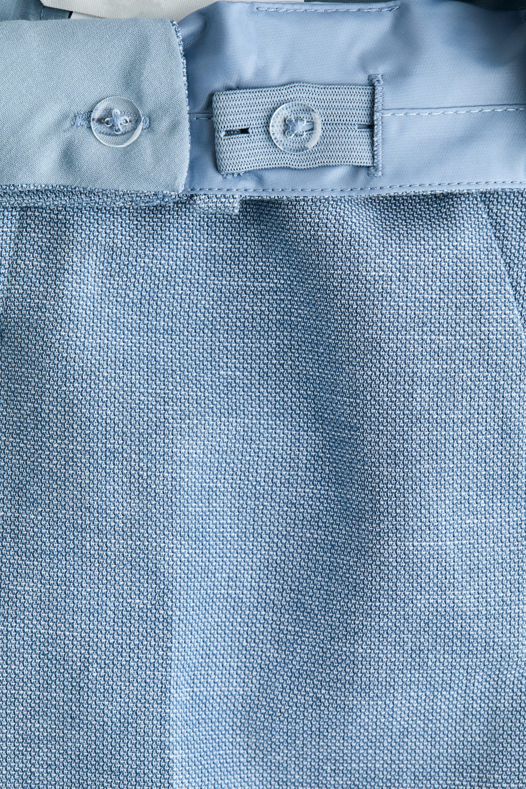 بنطلون أنيق مصنوع من قماش منسوج من مزيج الكتان والقطن، مع خصر قابل للتعديل بشريط مطاطي، وسحاب مع زر إغلاق. مزود بجيوب جانبية متقاطعة، وجيوب خلفية مزخرفة، وطيات في الأمام والخلف، وأسفل ضيق.