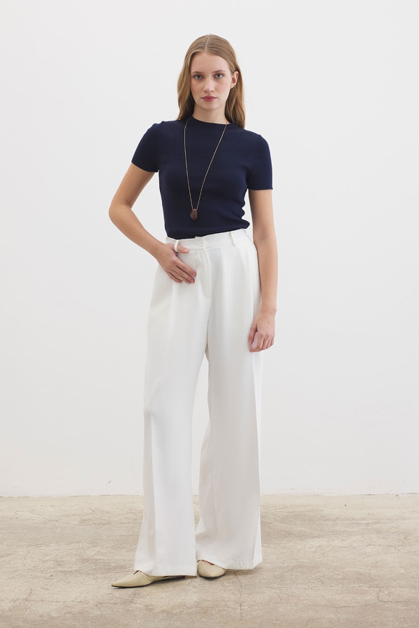 ميزات بنطلون بالازو كريمي بثنية واحدة