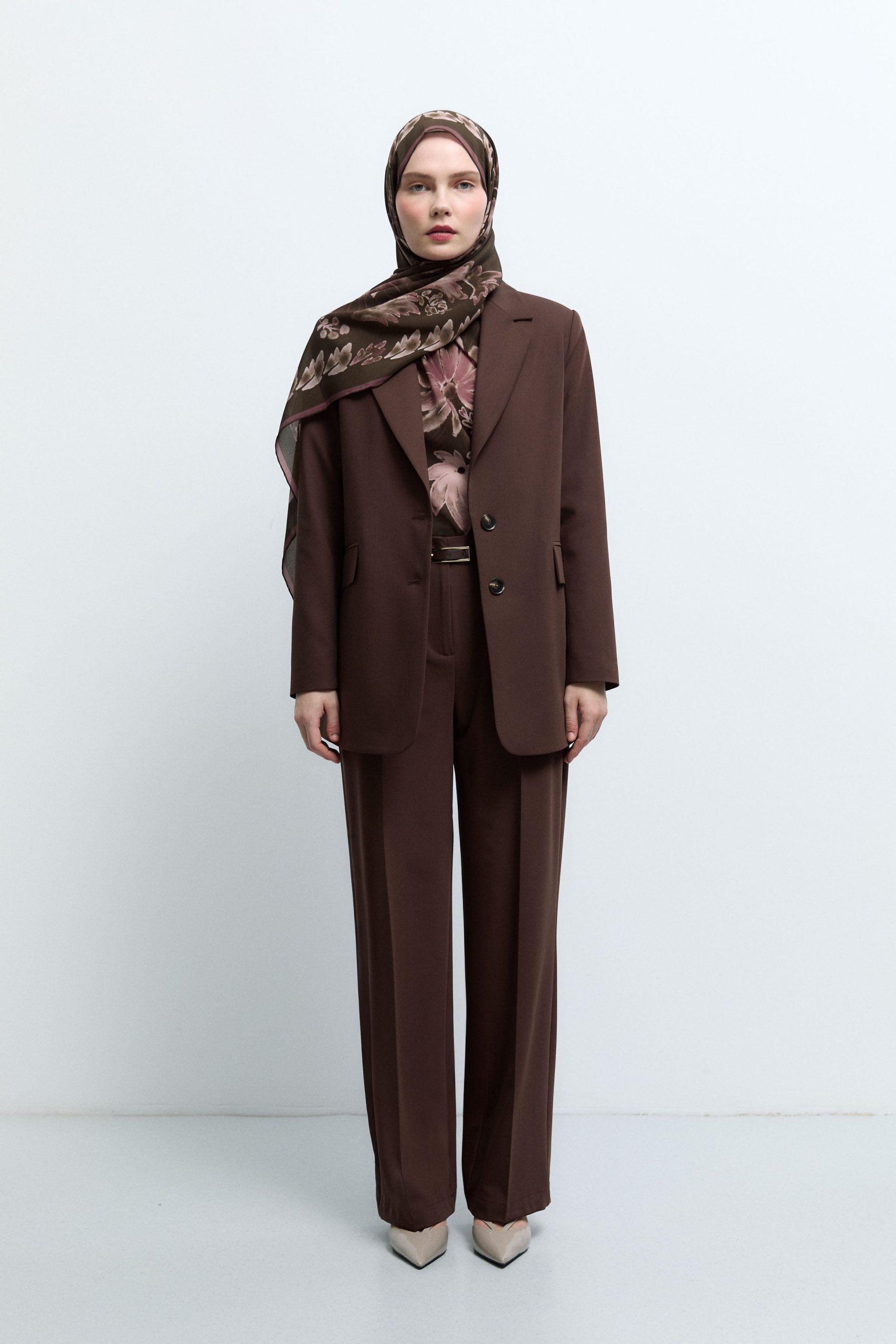 بنطلون بحزام وسحاب جانبي – لون القهوة