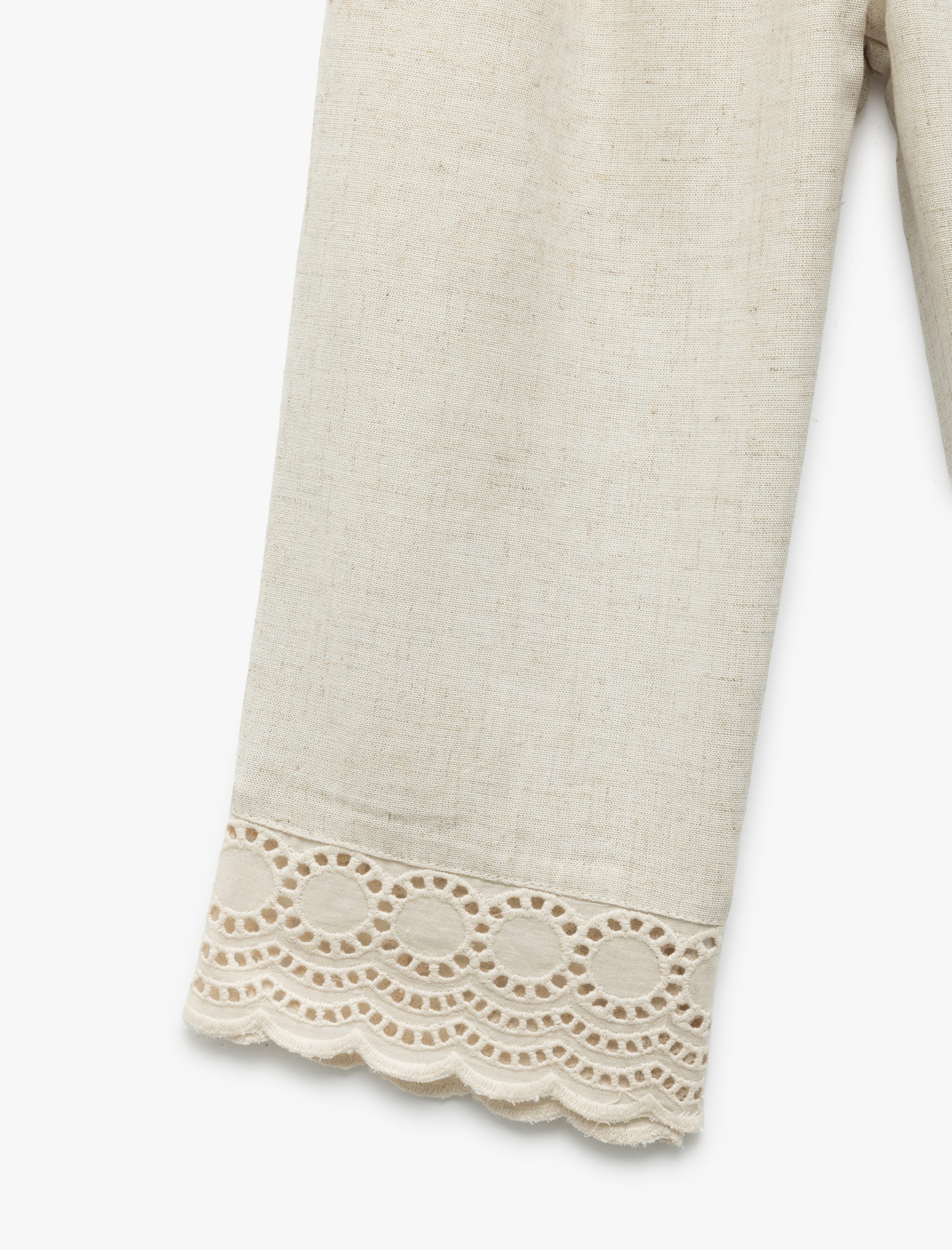 بنطلون بناتي من خليط الفسكوز والكتان مزين بالتطريز ومطاطي الخصر