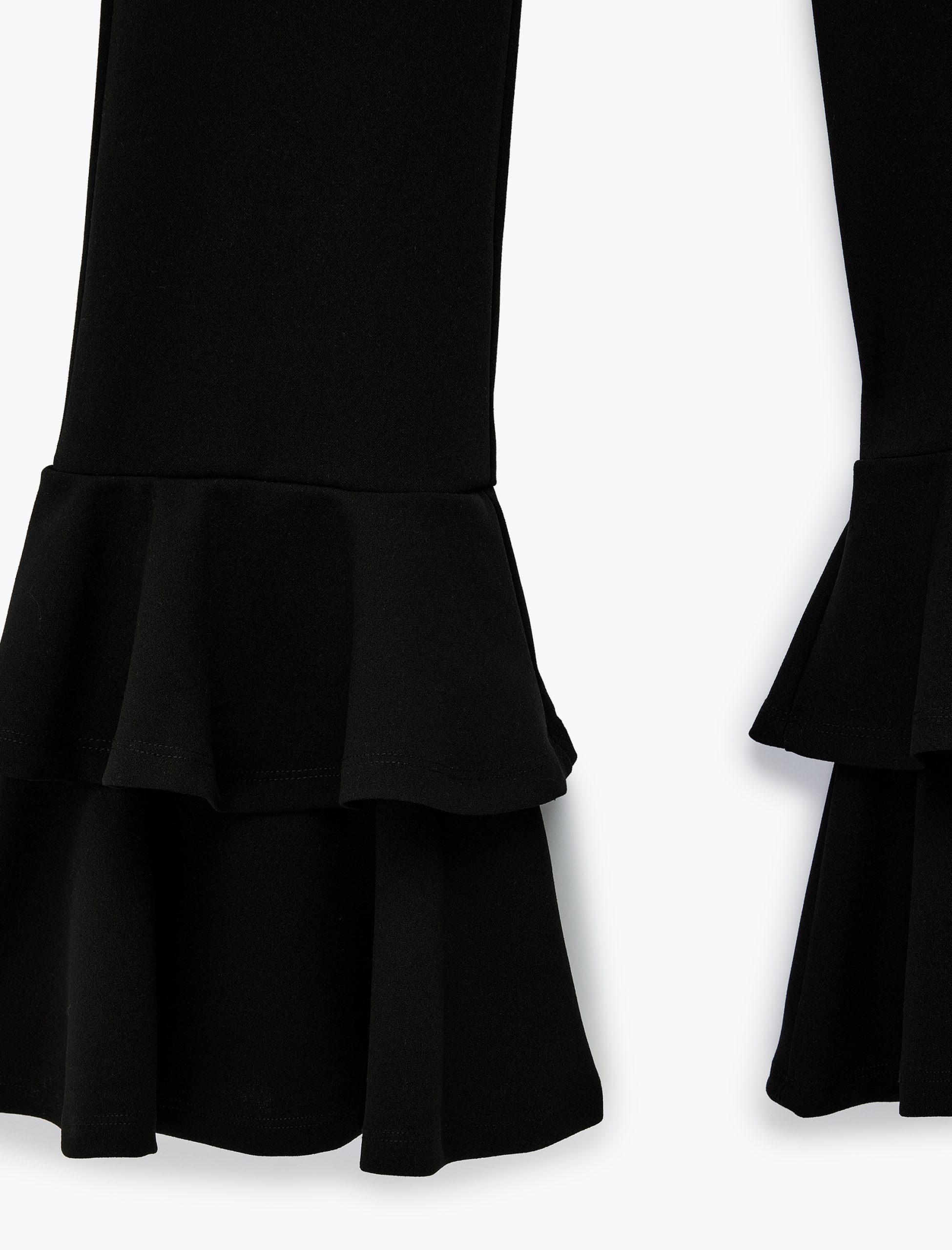 بنطلون بنطلون إسباني متموج بتفاصيل كشكشة للفتيات مع خصر مرن