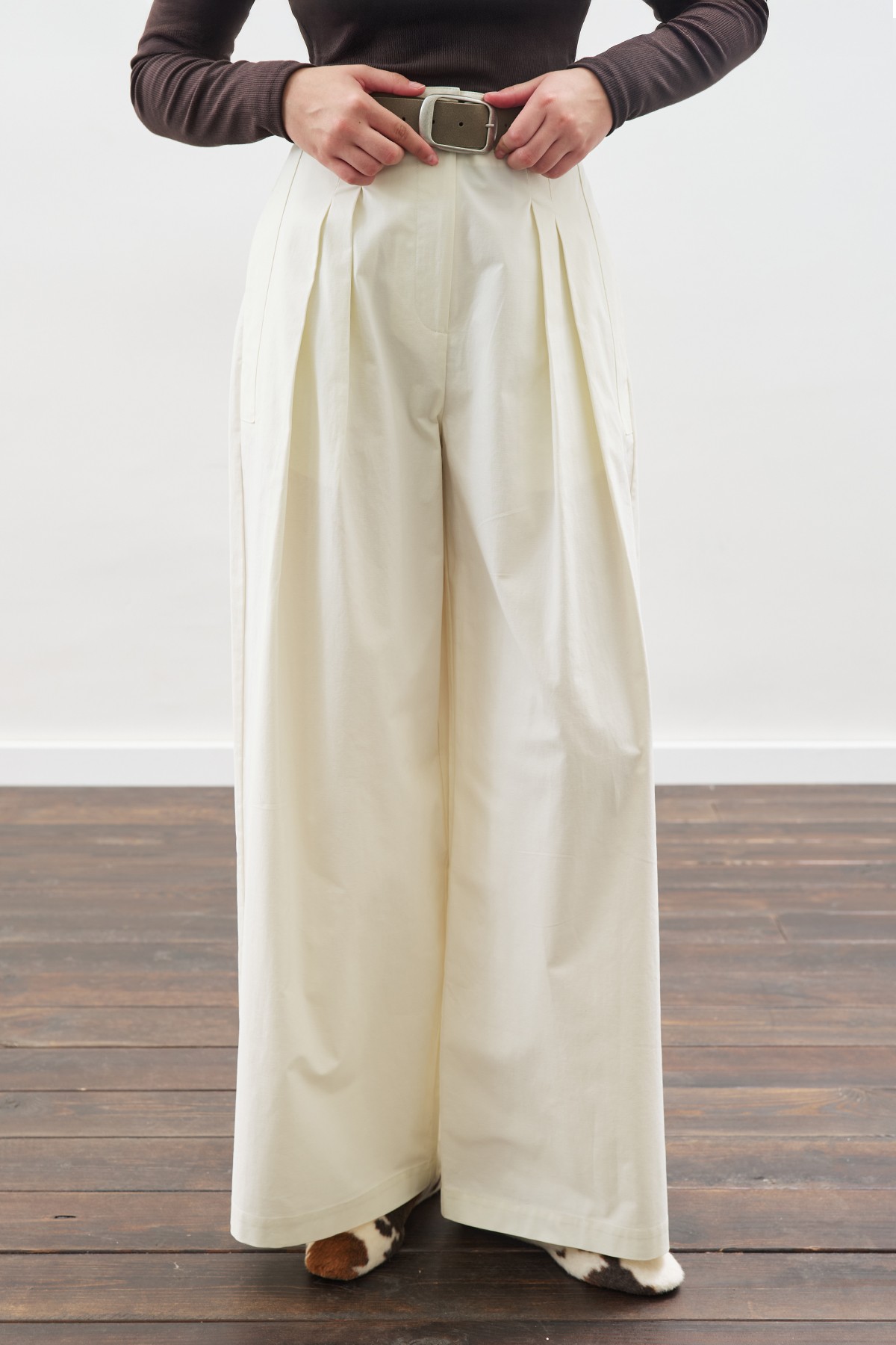 بنطلون أساسي بشريط مطاطي عند الخصر – بيج