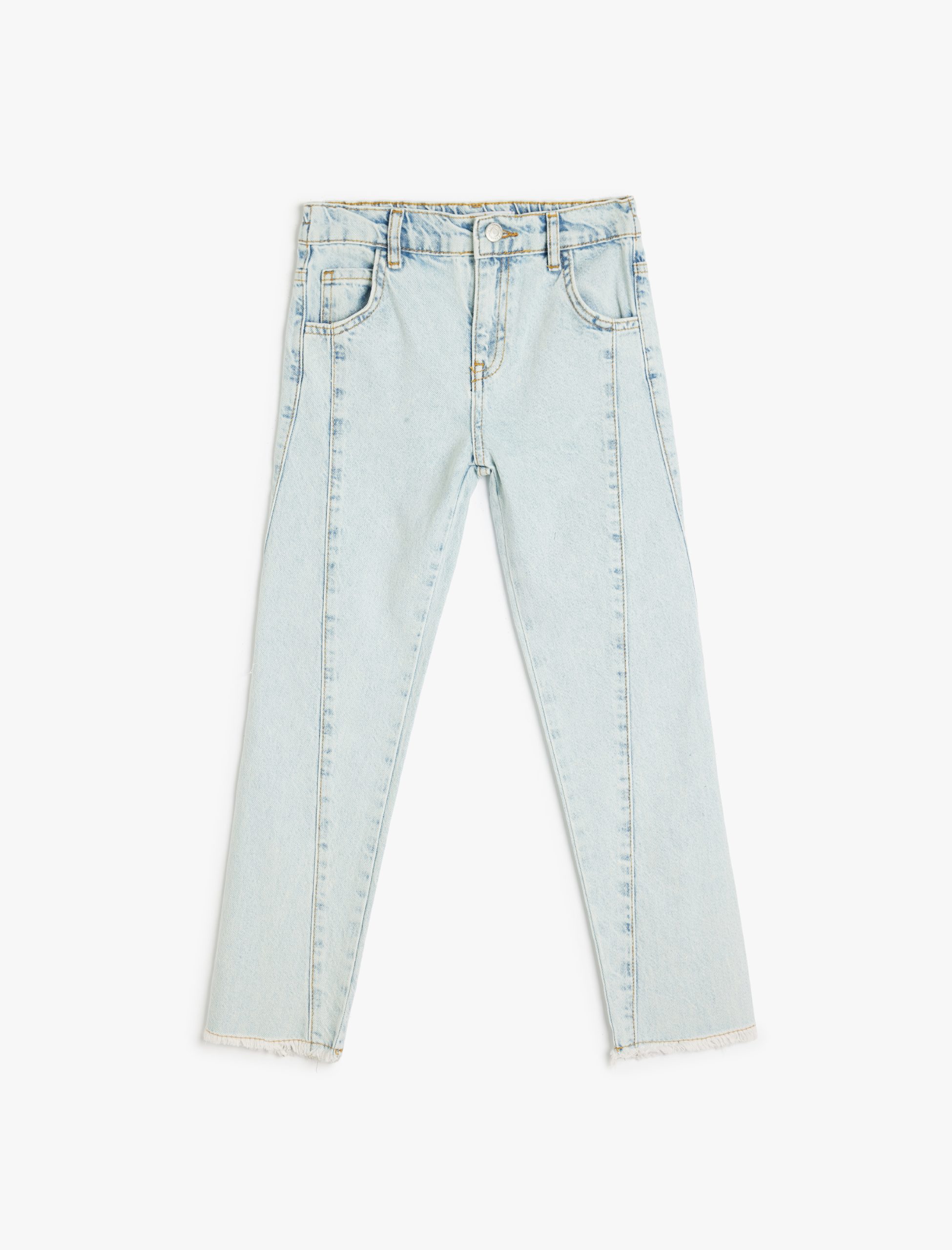 بنطلون جينز قطني عالي الخصر للفتيات – جينز بوي فريند