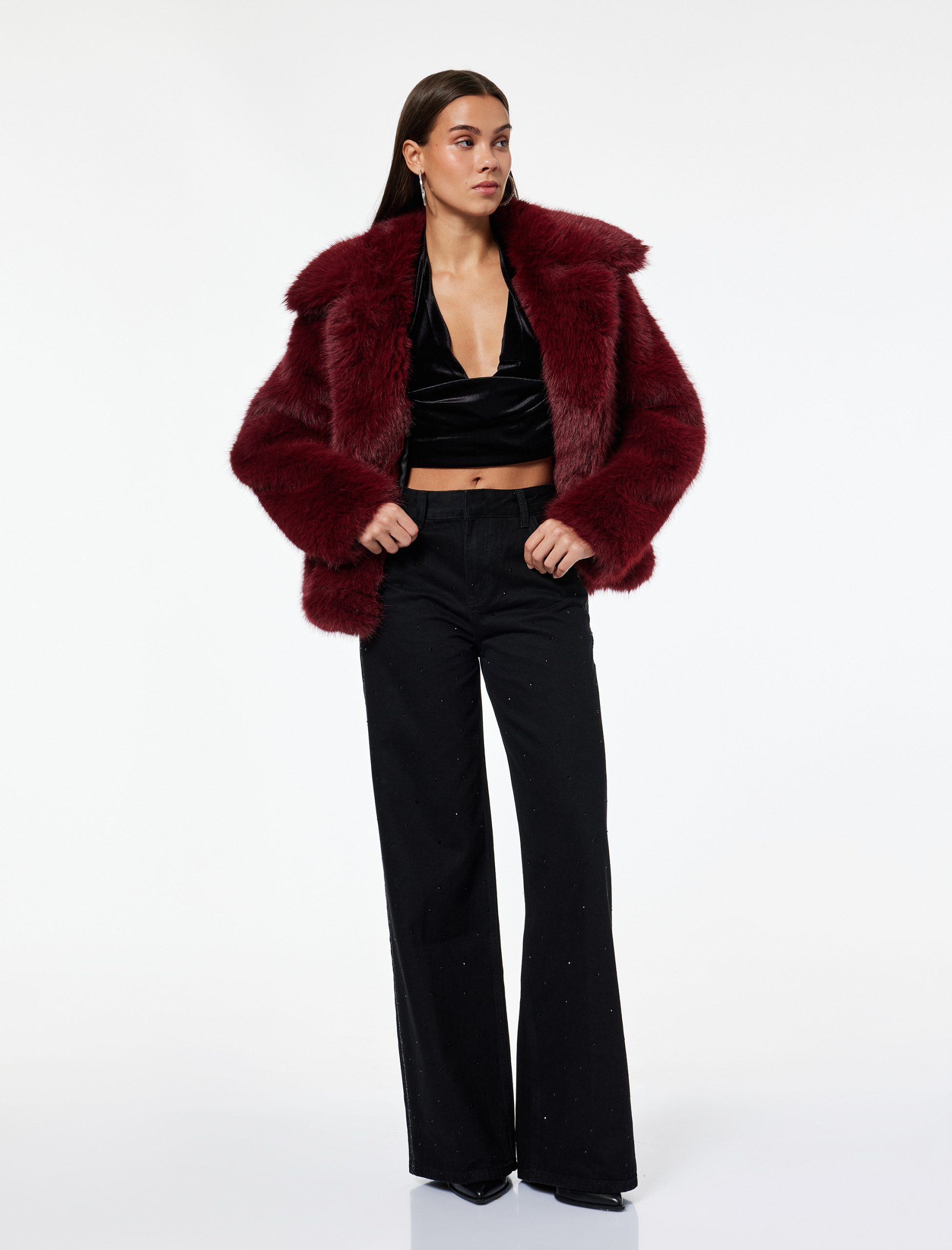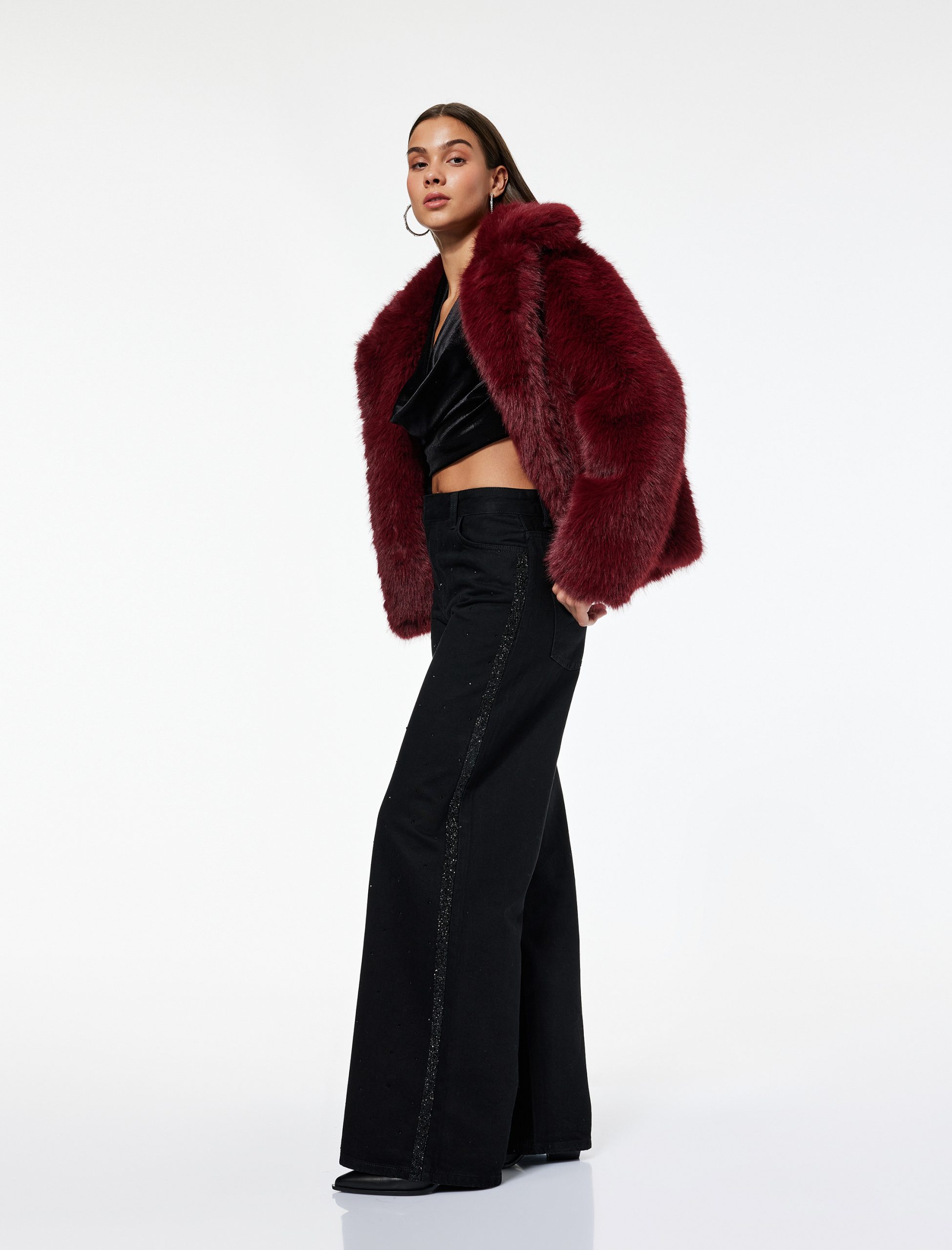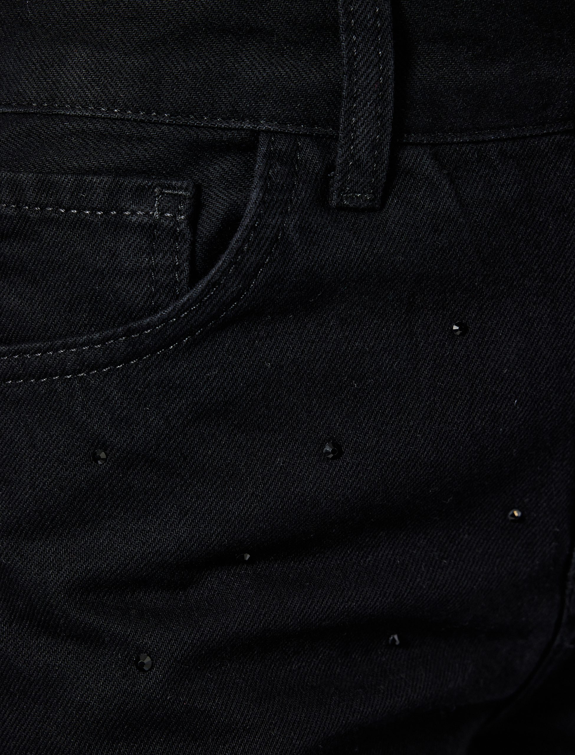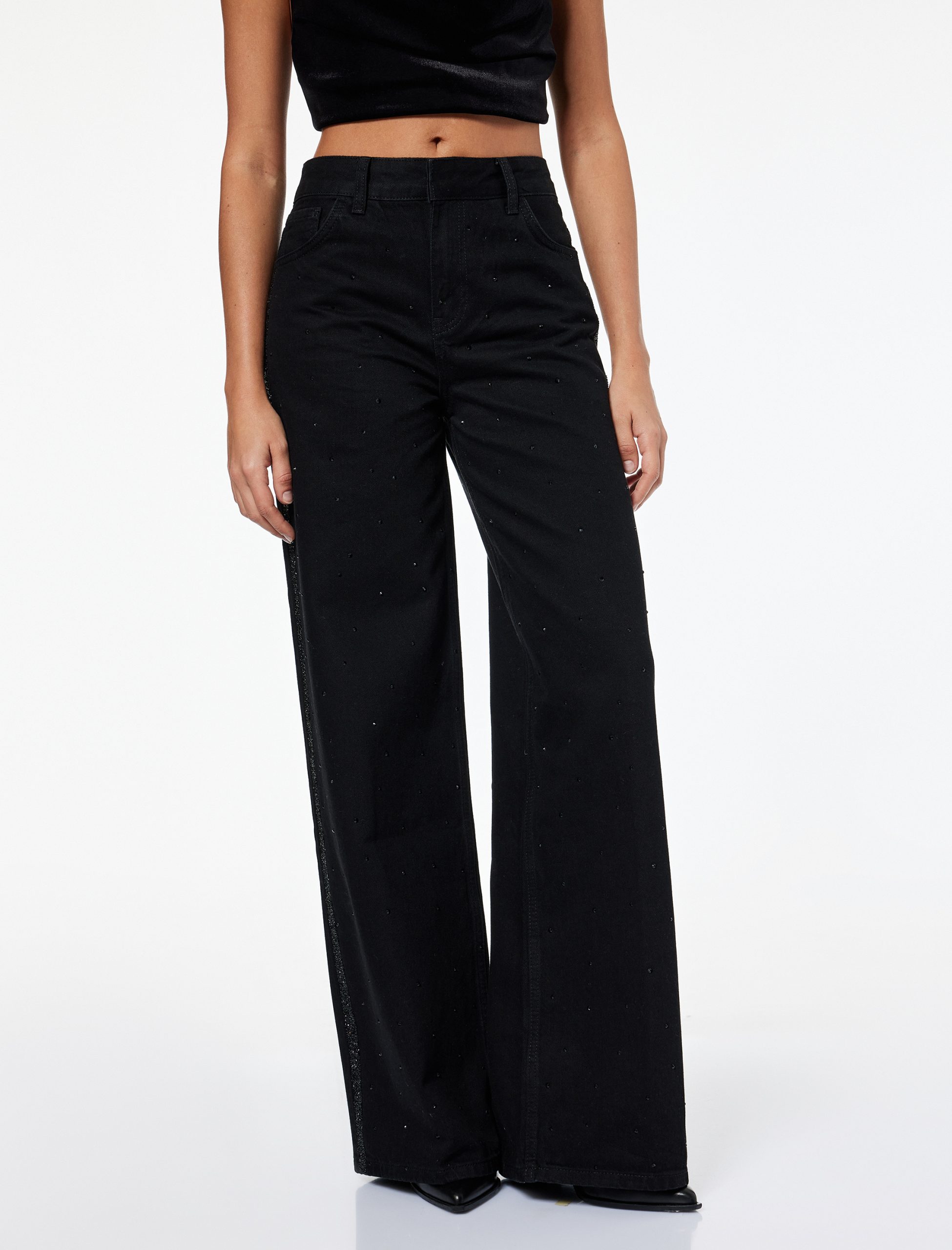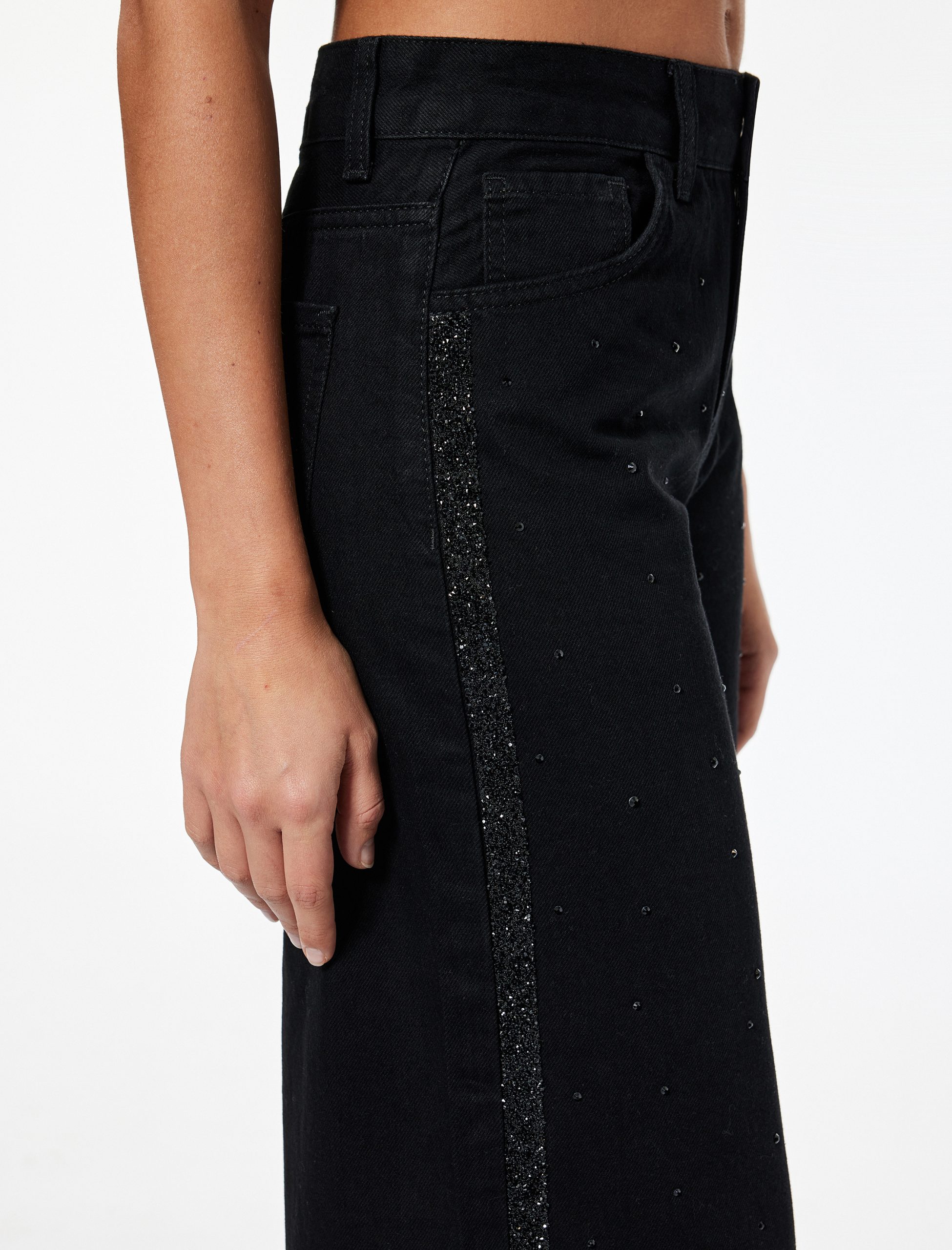 بنطلون جينز واسع الساق بتفاصيل شرائط لامعة – جينز واسع مستقيم