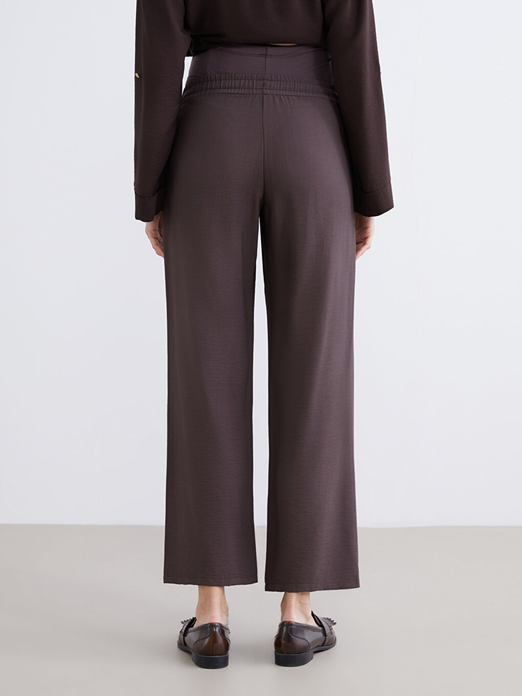 بنطلون واسع الساق بخصر مطاطي بلون القهوة