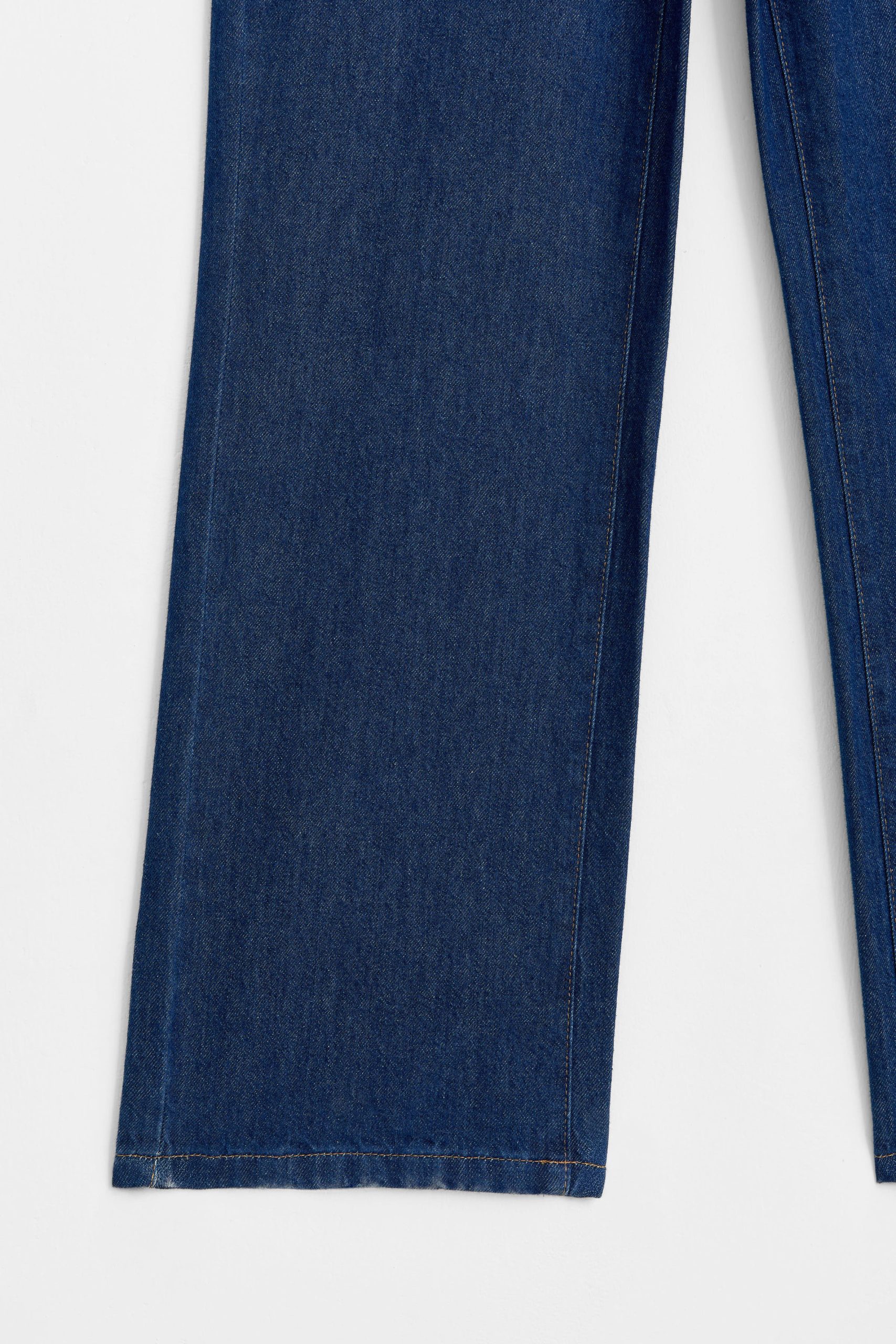 بنطلون الدينيم بتفصيل رياضي يضفي لمسة عصرية على قماش الدينيم الكلاسيكي من خلال خطوط الخياطة البارزة، ليقدم خياراً أنيقاً وعصرياً لتوليفات راقية وجريئة.