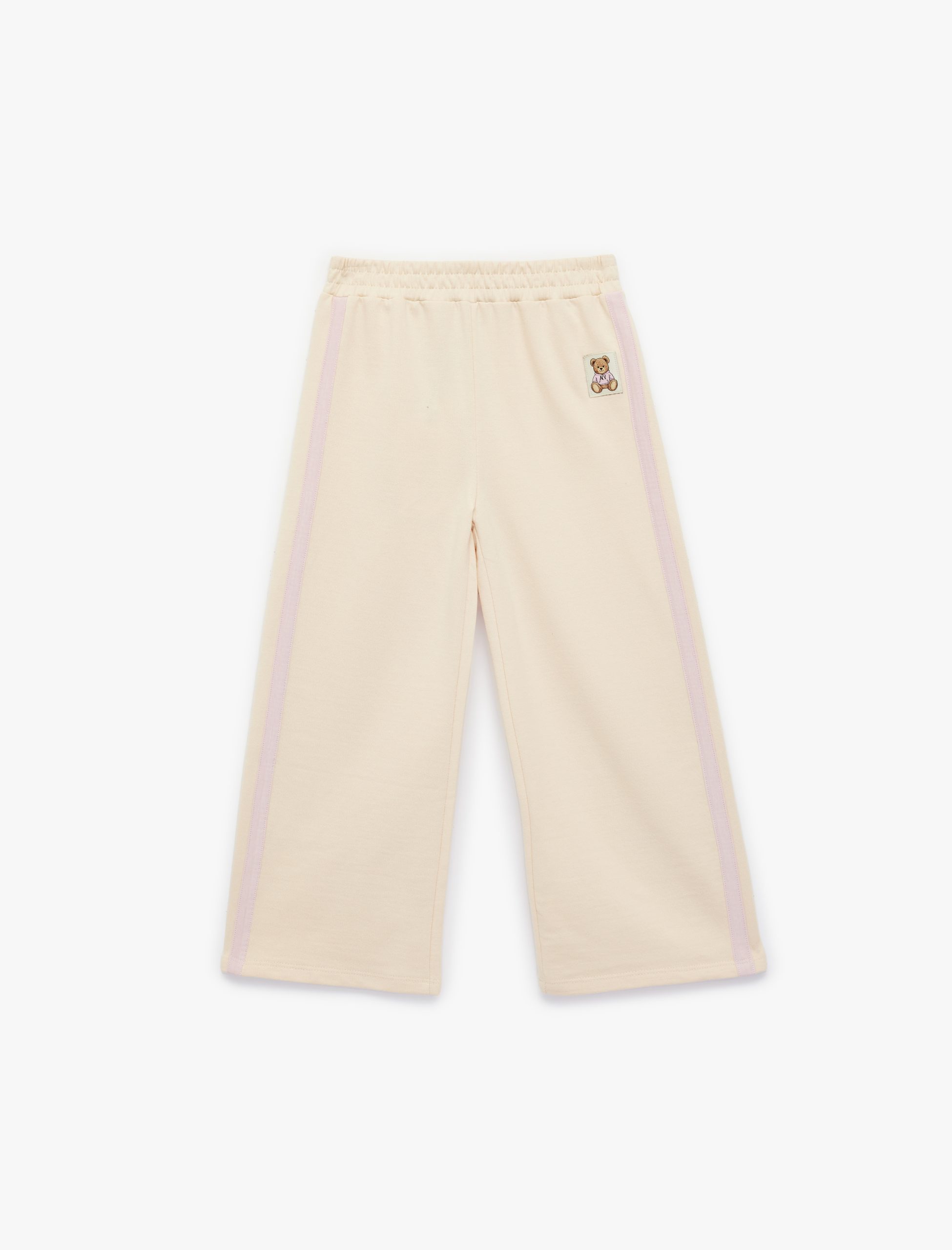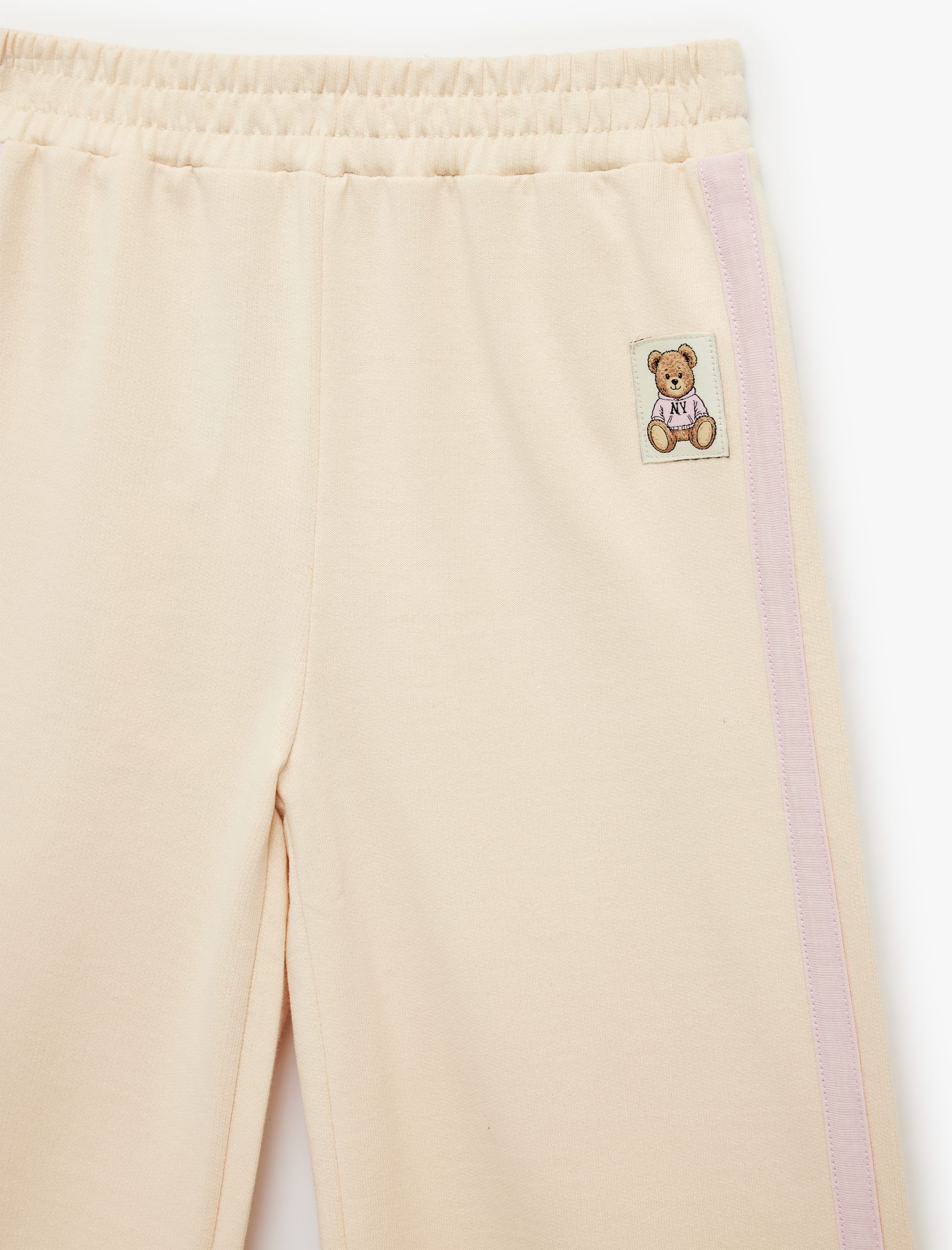 بنطلون رياضي قطن واسع الساق للبنات بتفاصيل دب ومبطن بالشيربا
