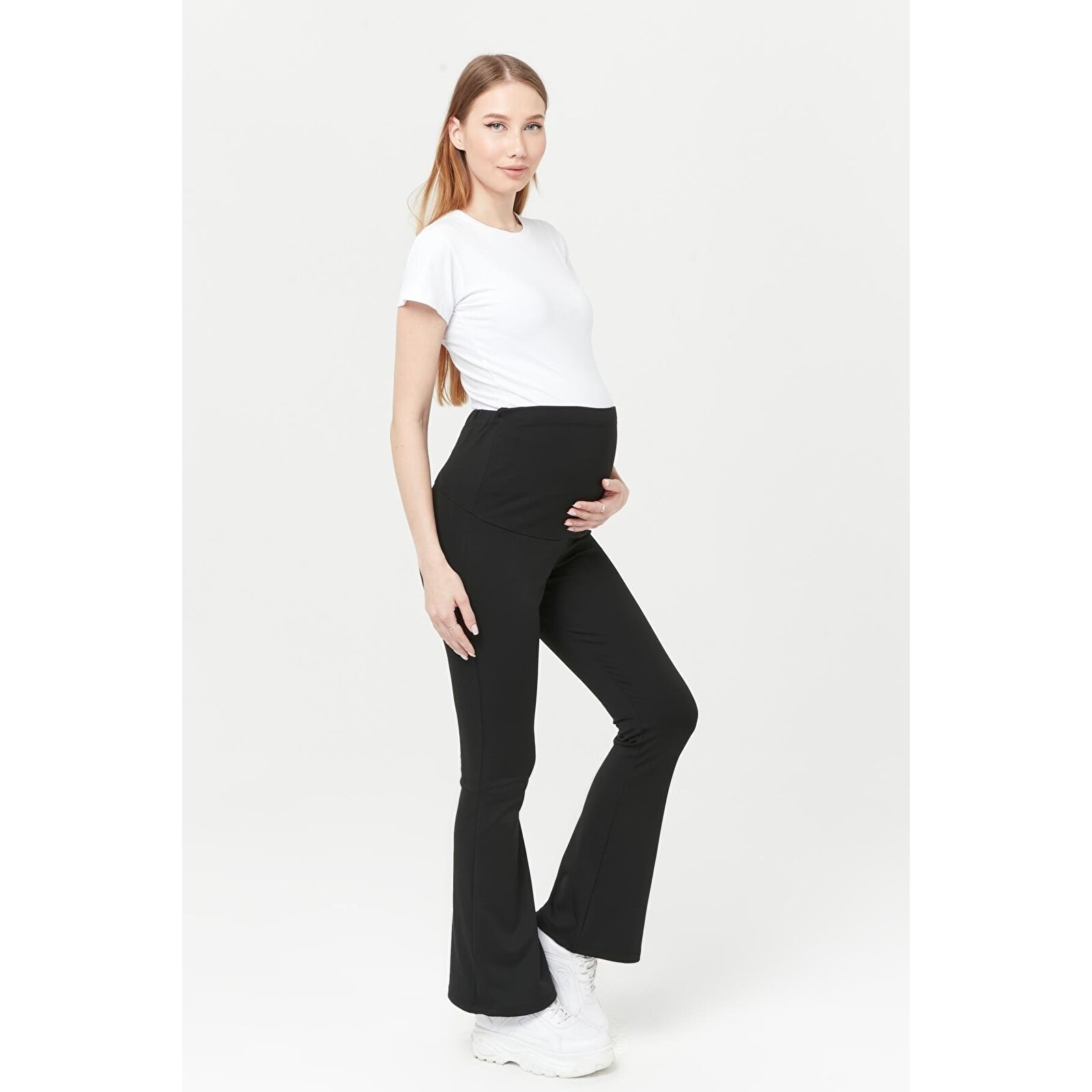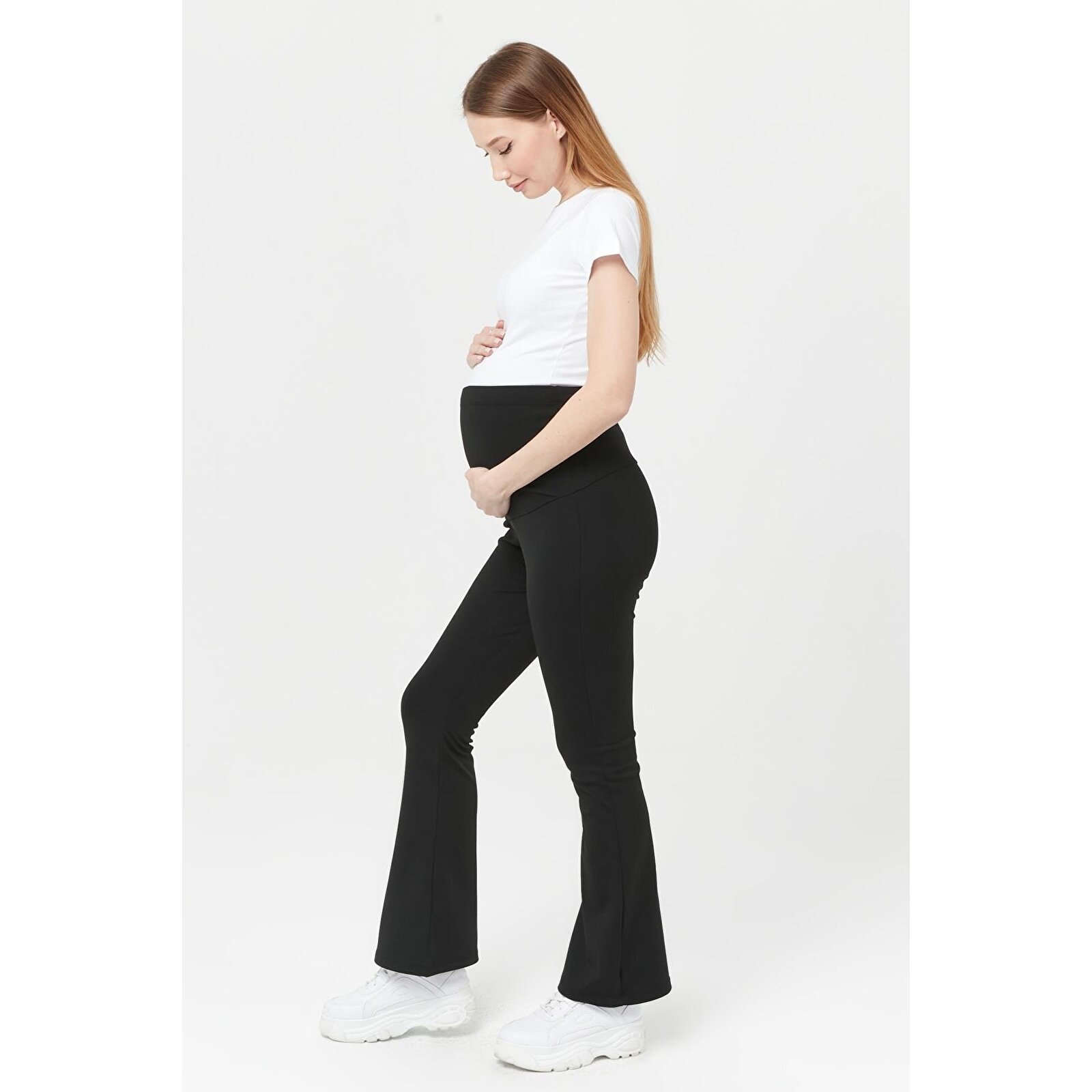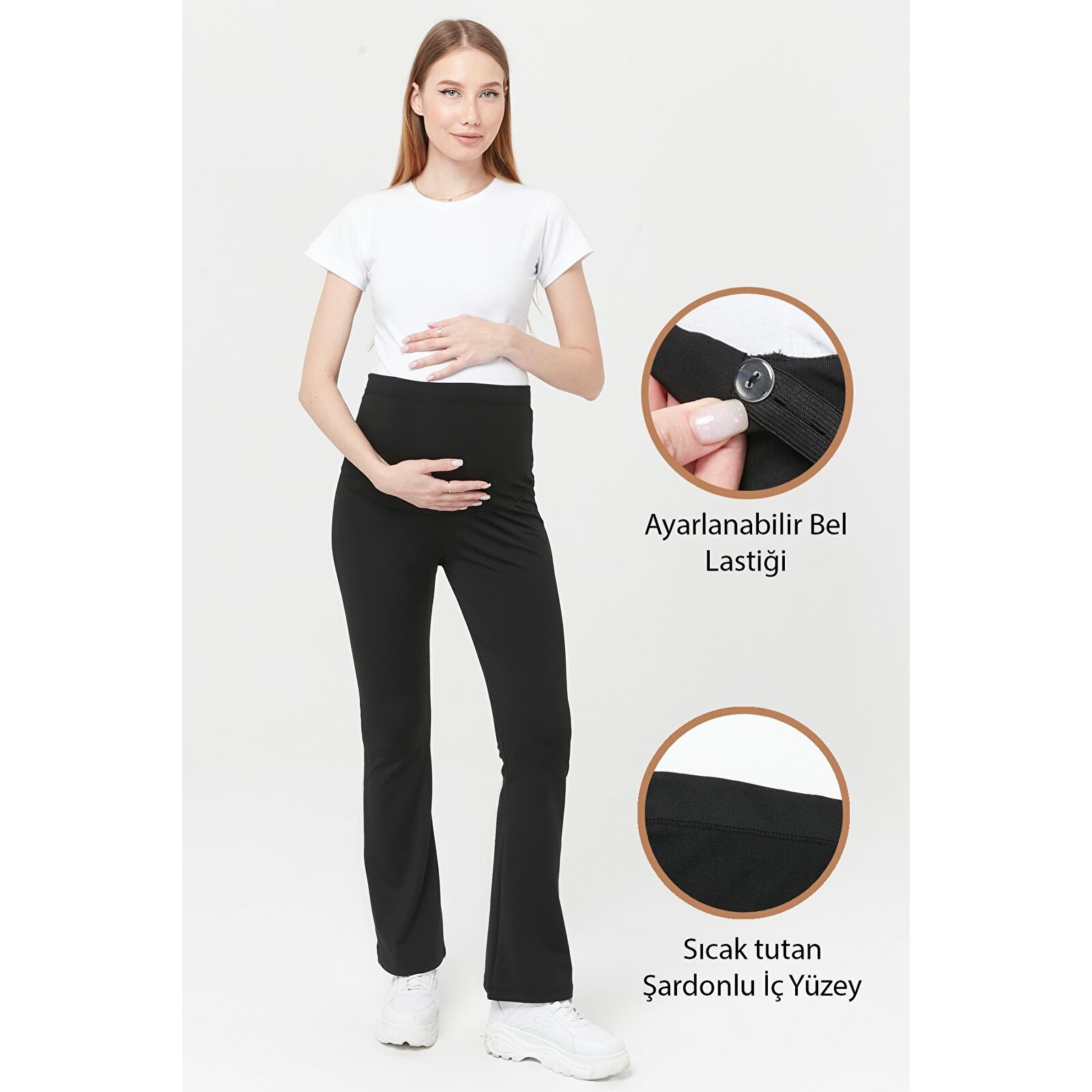 بنطلون رياضي للحوامل بخصر قابل للتعديل – أسود شتوي حراري ذو أطراف إسبانية متسعة
