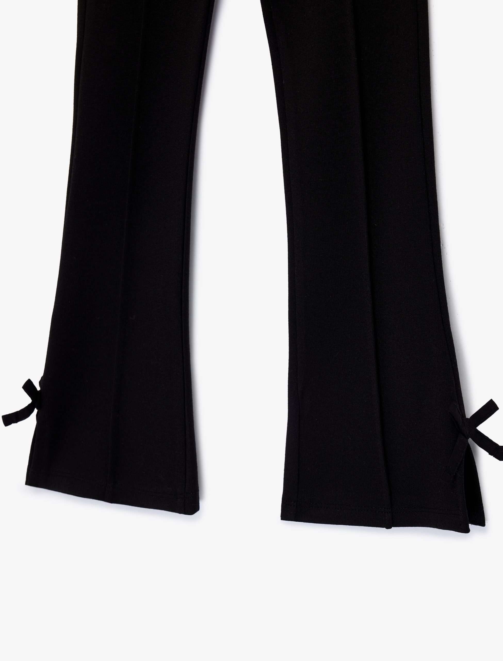 بنطلون ضيق للبنات بمزيج فيسكوز وخصر مطاطي وتفاصيل ربطة على الطراز الإسباني