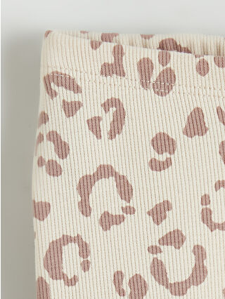 بنطلون ضيق مطبوع لفتاة رضيعة بلون البيج مع حزام مطاطي – قطعتين
