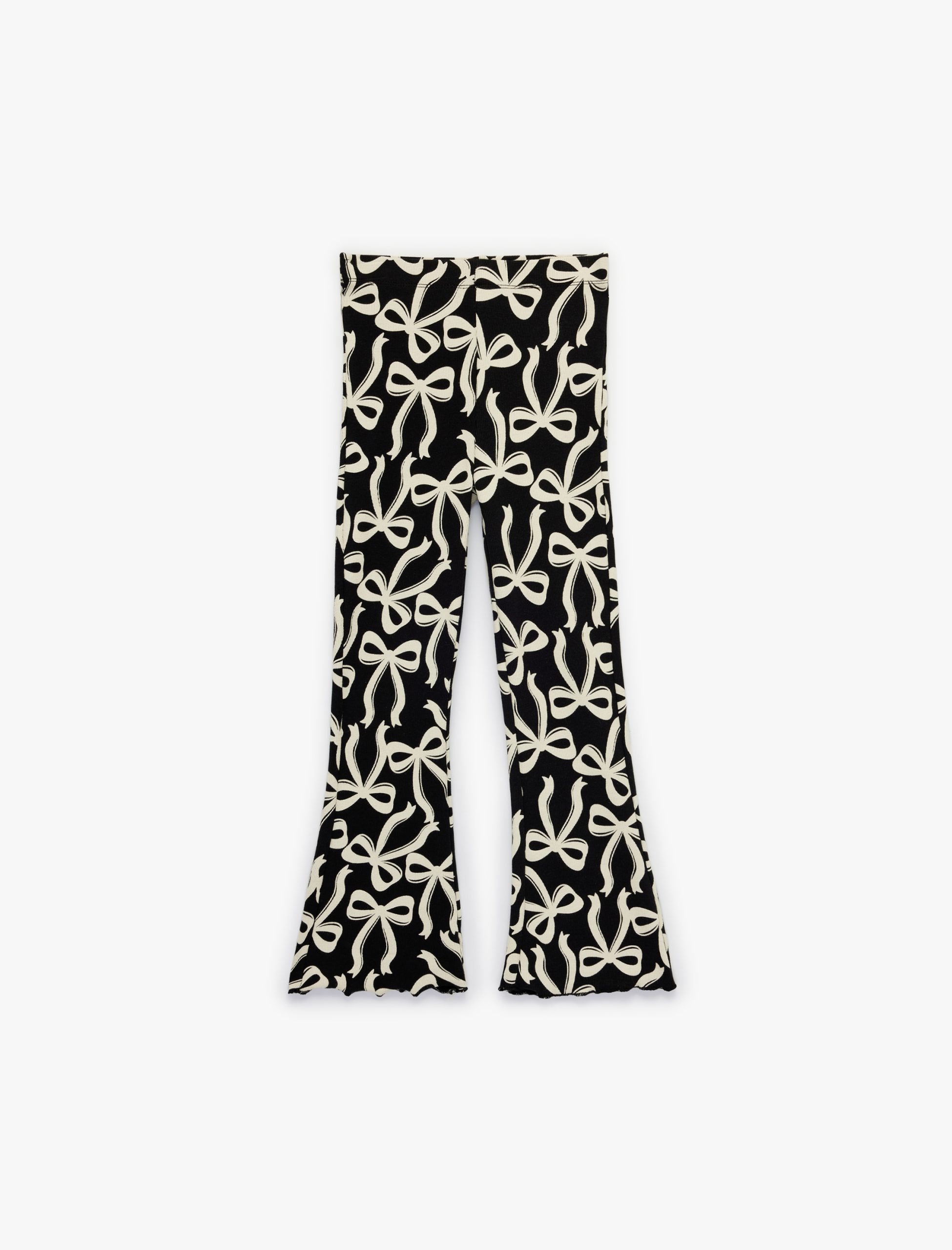 بنطلون واسع الساق للفتيات من خليط الفيسكوز مطبوع بربطة عنق وخصر مطاطي