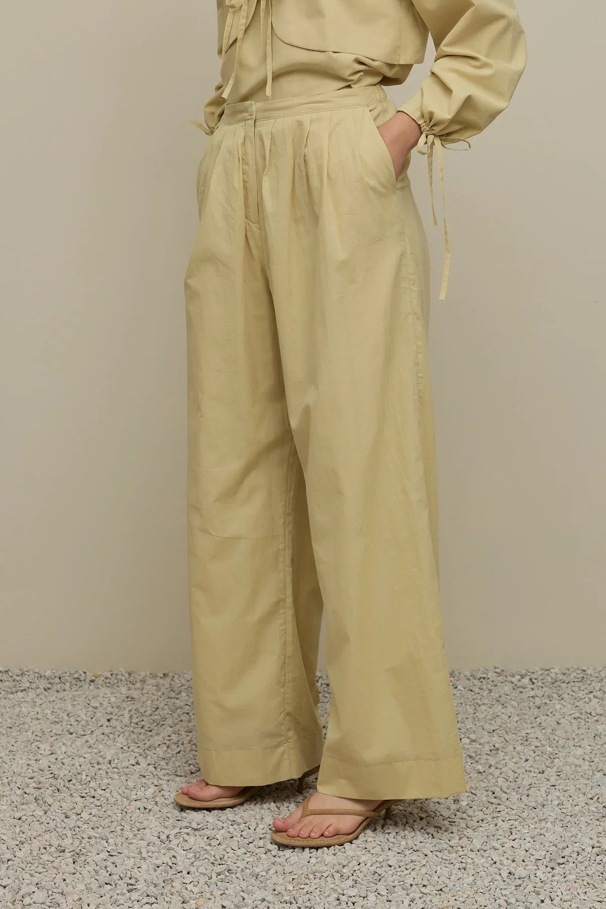 بنطلون فوال أصفر فاتح متعدد الطيات