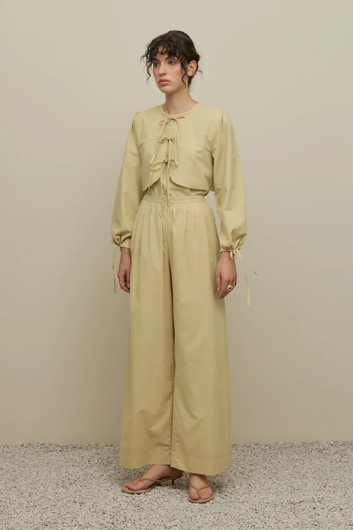 بنطلون واسع الساق – بيج