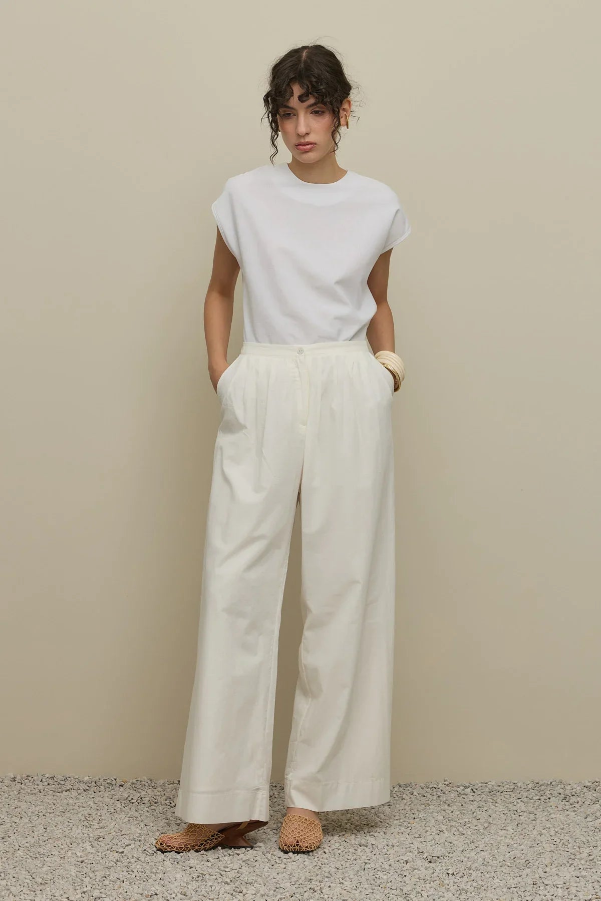بنطلون واسع بجيوب – لون بيج