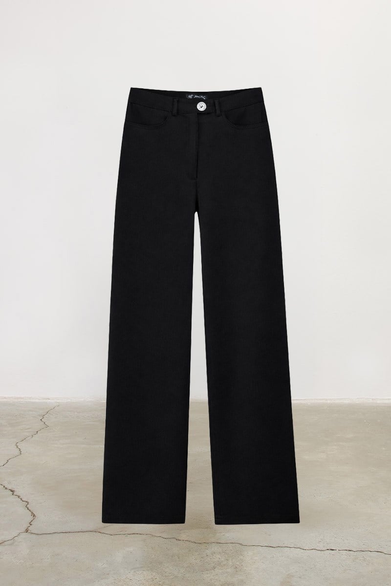 بنطلون قطني أسود بأزرار من الصدف